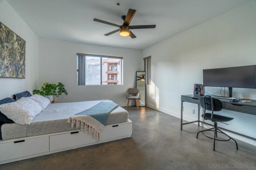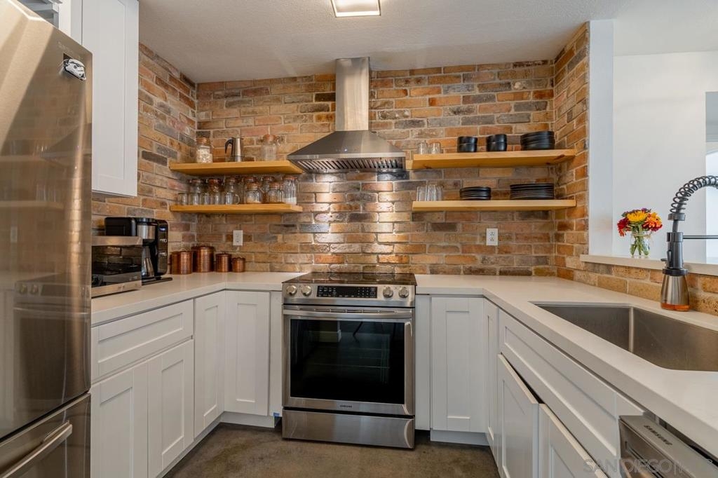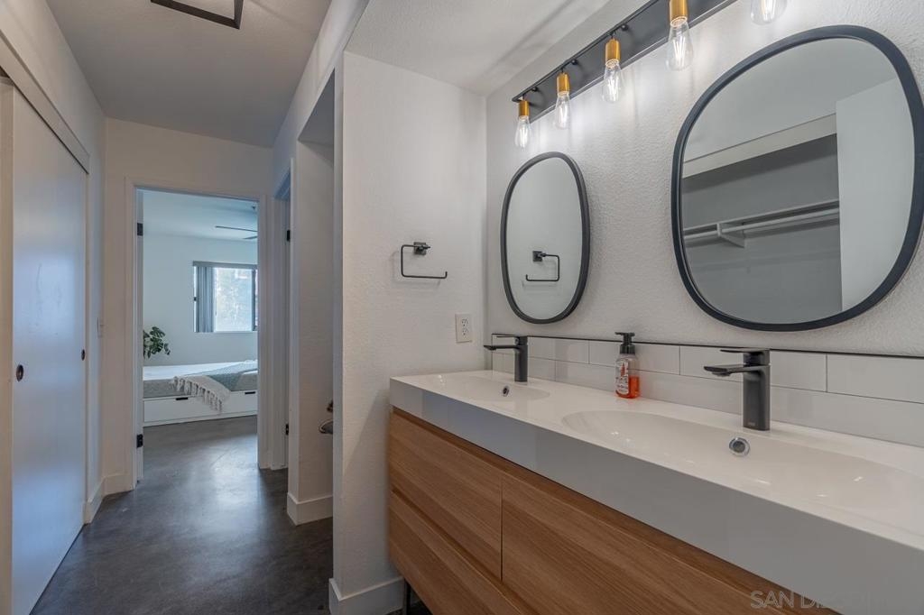 Will not last! VA Approved! Tastefully and creatively remodeled condo with dual master bedroom, open concept kitchen with quartz countertops, new appliances. Beautiful bathrooms with custom tiled finishes, mid century modern lighting throughout, and designed concrete floor! Lots of natural light. Washer/dryer convey with the unit. One covered gated parking spot, and a second outdoor assigned spot. Minutes from SDSU, Downtown, Mission Valley, great restaurants and shopping. 1 pet per Residence. Neighbors are pet friendly and meet daily at sunset with their furry friends! See CC&R p40-41 in MLS document. HOA Board have the right to limit the weight of the pet. The complex is located in a secluded area on the top of the hill with lots of mature trees and beautiful views. HOA said that the spa isn't operational. Fridge and BBQ do not convey. Other Fees: 0 Sewer: Sewer Connected Topography: LL