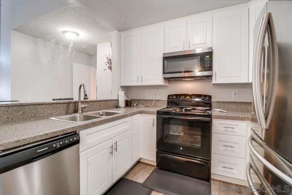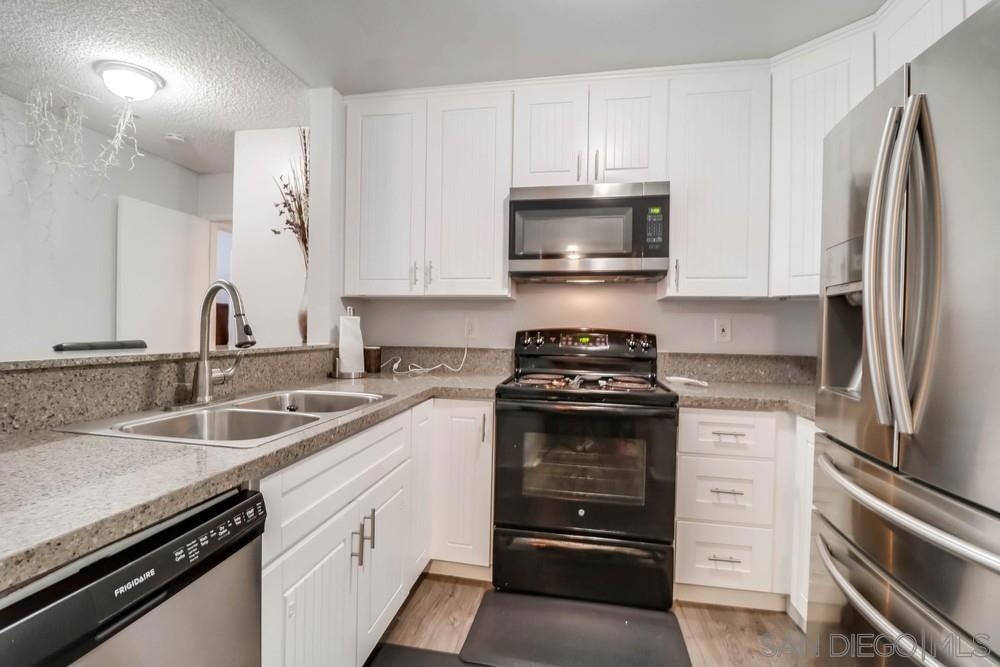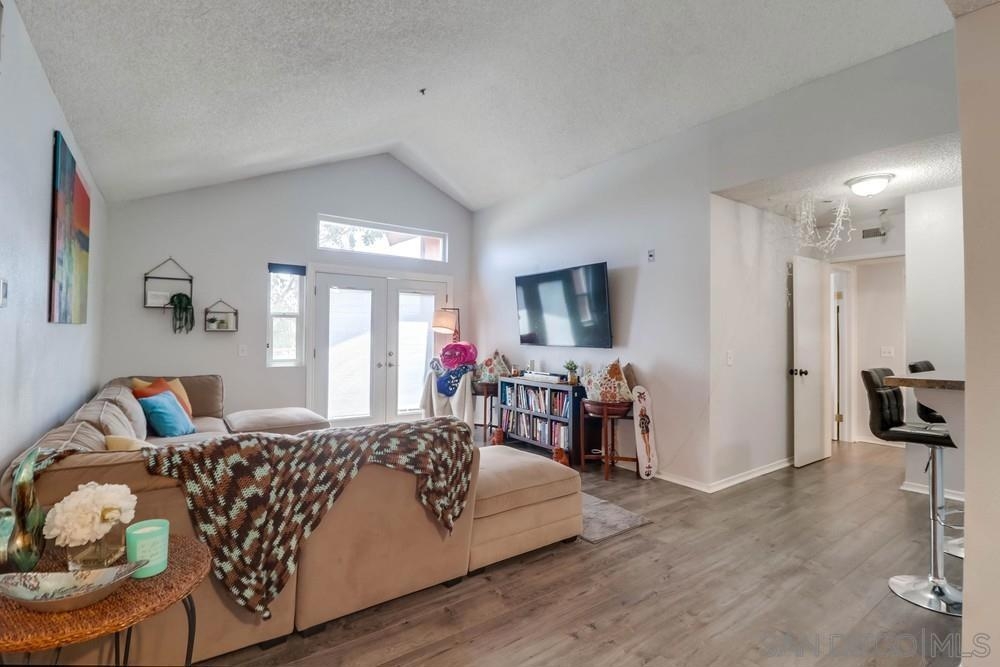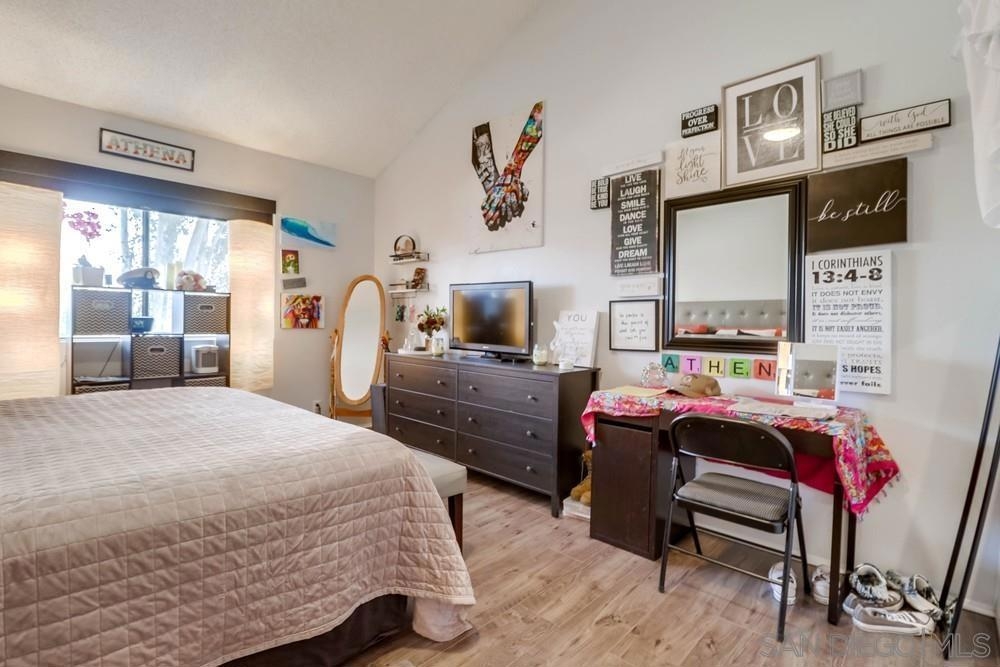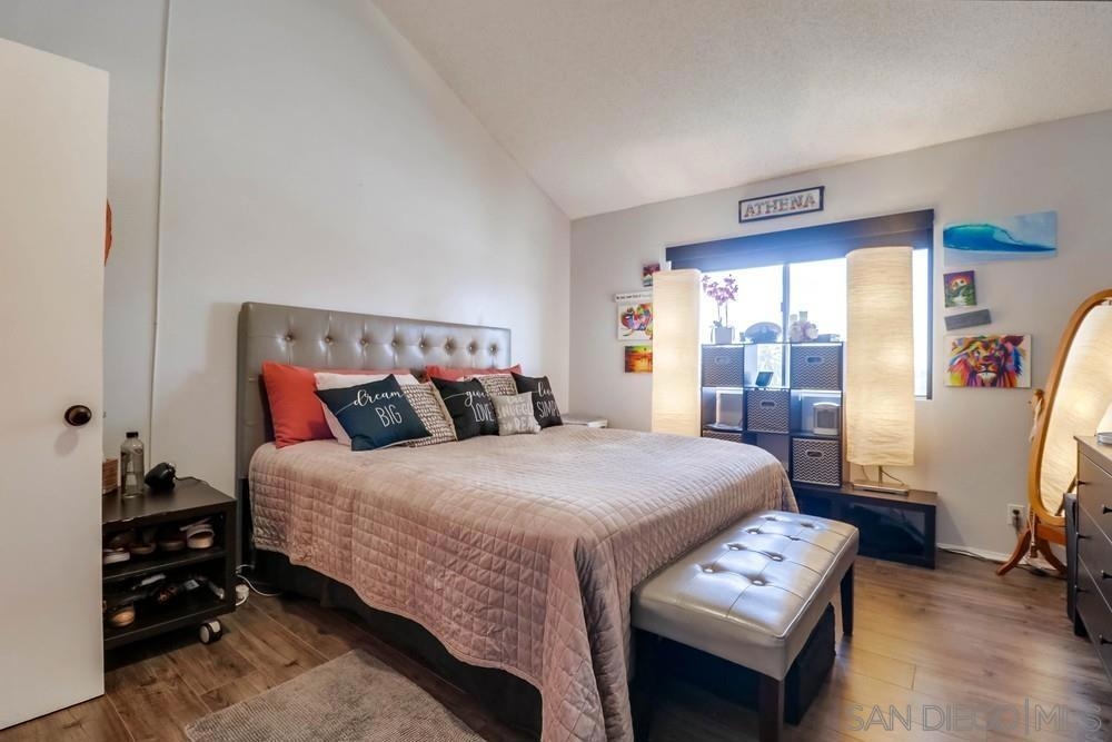 Simply put this is a rare opportunity! This top floor unit boast cathedral ceilings, dual master bedroom, granite counter tops, laminate flooring, opposite end bedrooms each with their own beautiful bathrooms and custom tiled finishes, stainless steel appliances, and to top it the seller will entertain selling it fully furnished. Enjoy no one above you + a balcony to walk out to makes for peaceful living. Minutes from SDSU, Downtown SD, Mission Valley and Fashion Valley shopping center, and a wide variety of restaurants makes this location just perfect. The complex is in a nice, quiet, secluded area on the top of a hill that boasts beautiful views.