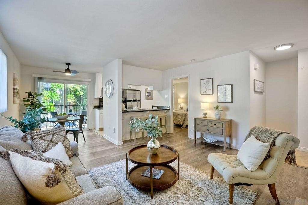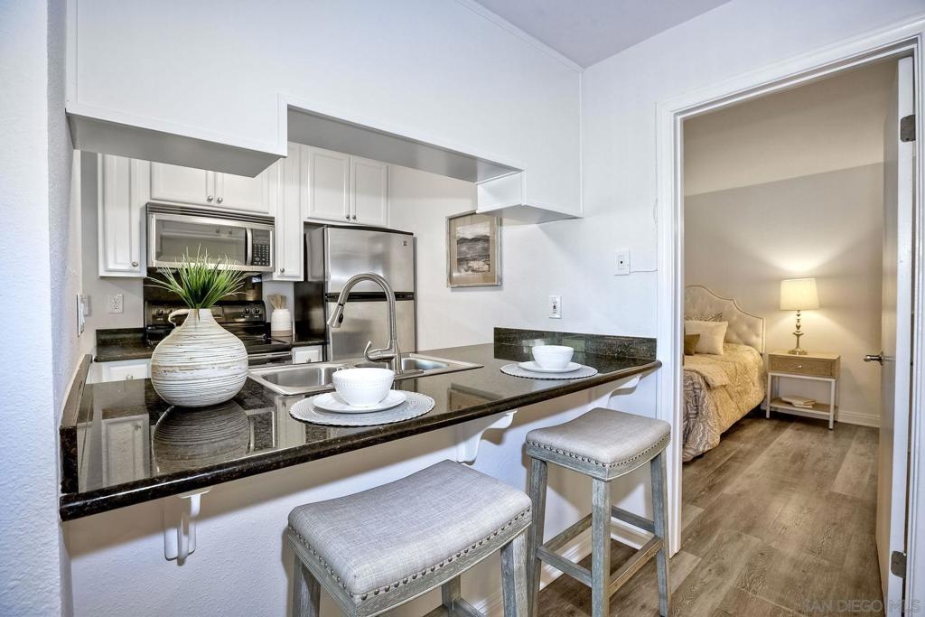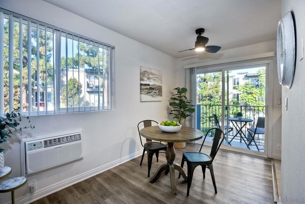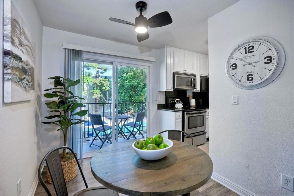 Preferred corner location features a balcony and is designed to enjoy the view of the pool and courtyard. Fresh paint throughout enhances the light and airy ambiance. A walk-in closet too. Amenities include pool, spa, barbeque gathering area and the fitness center is just across the hall from your door. Rolando - College area is only a quick bike ride to SDSU. Conveniently located near shops, restaurants, public transportation, and freeways. New A/C unit. HOA includes water. FHA and VA approved complex. To unit: Walk across the lobby, enter the pool area, walk past the pool, enter the building door on your left, go up 2 flights of stairs, proceed through the door then #64 is the first unit on your left.