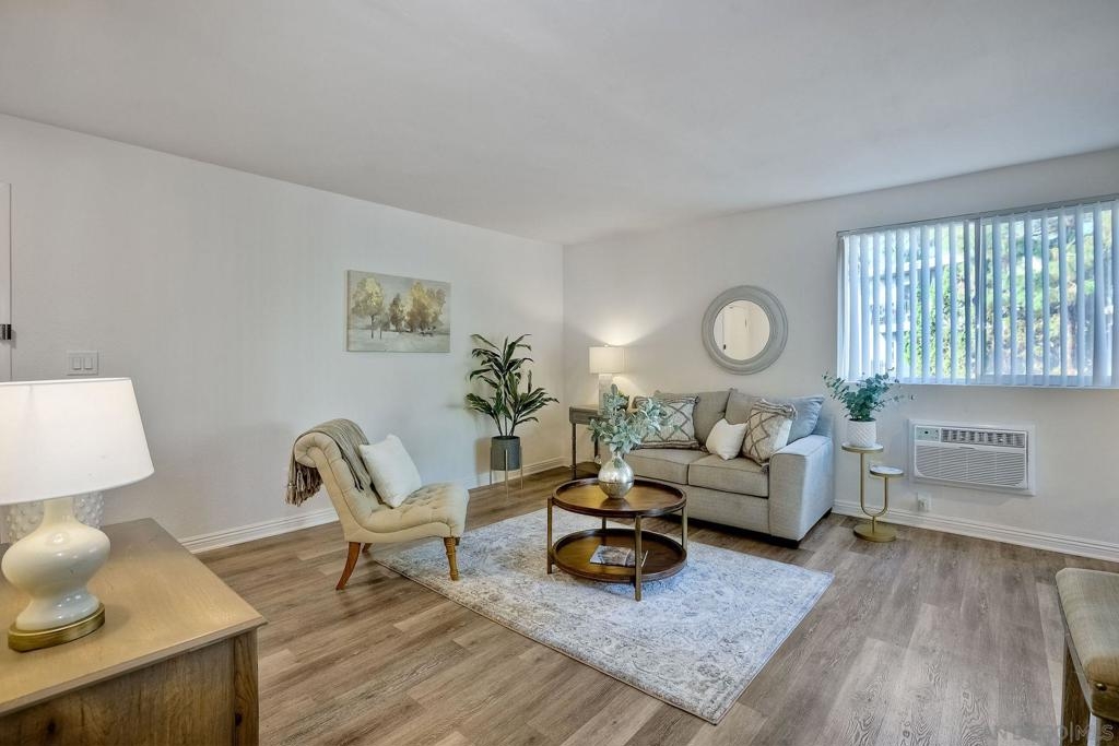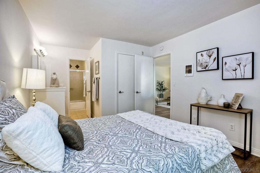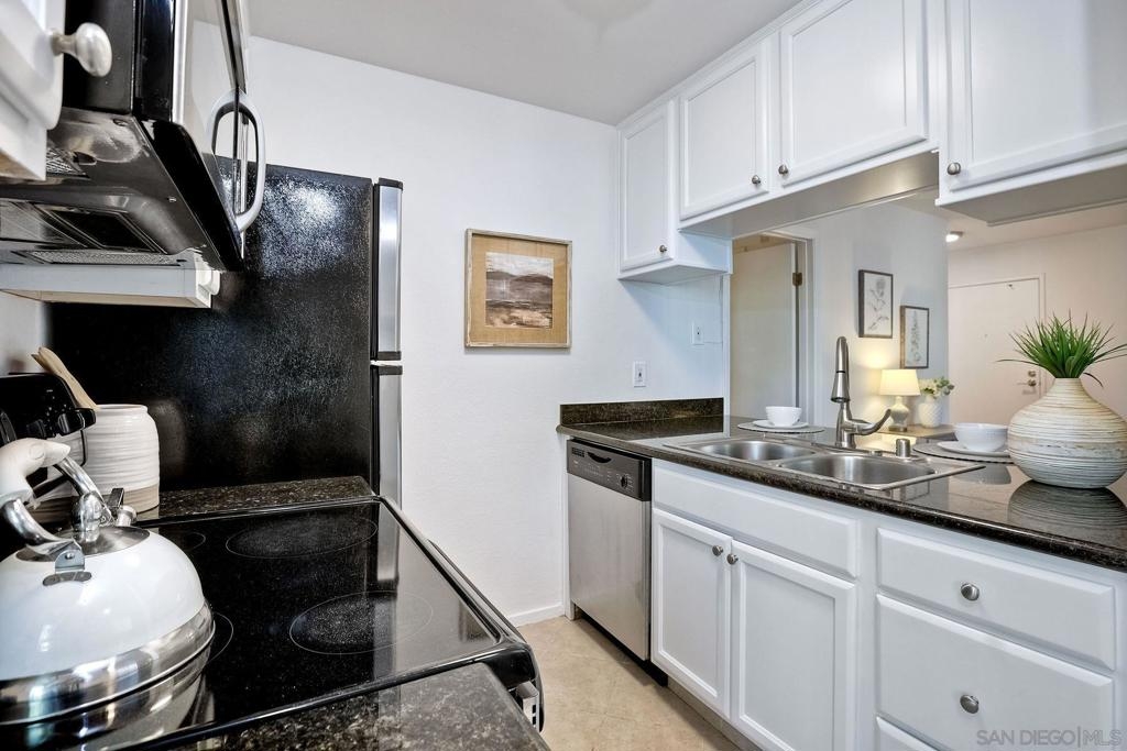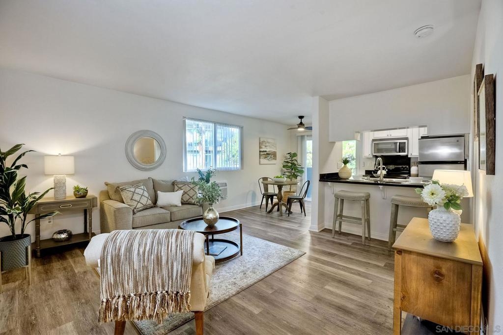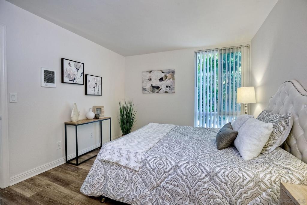 Preferred corner location features a balcony and is designed to enjoy the view of the pool and courtyard. Fresh paint throughout enhances the light and airy ambiance. A walk-in closet too. Amenities include pool, spa, barbeque gathering area and the fitness center is just across the hall from your door. Rolando - College area is only a quick bike ride to SDSU. Conveniently located near shops, restaurants, public transportation, and freeways. New A/C unit. HOA includes water. FHA and VA approved complex. To unit: Walk across the lobby, enter the pool area, walk past the pool, enter the building door on your left, go up 2 flights of stairs, proceed through the door then #64 is the first unit on your left.