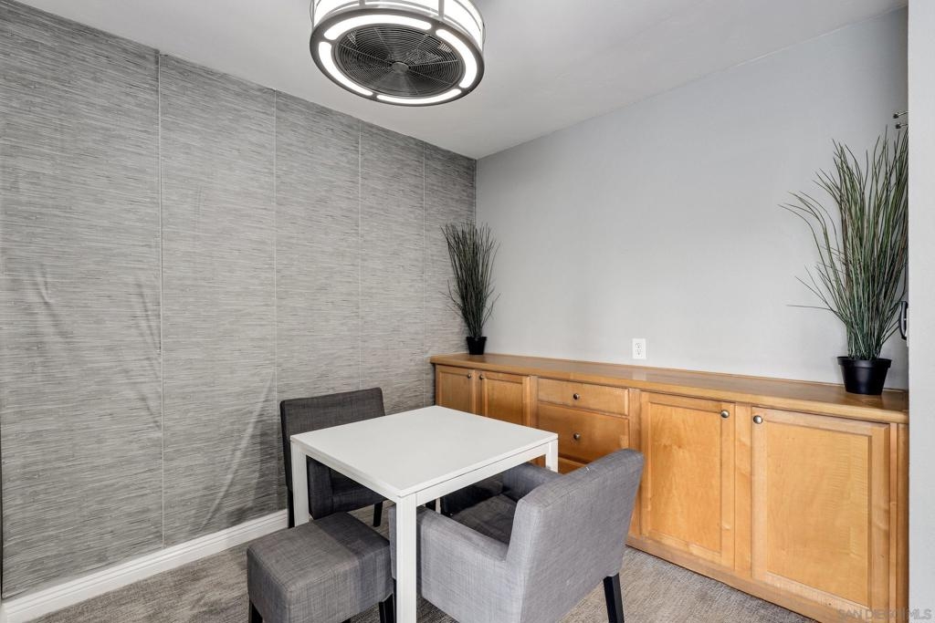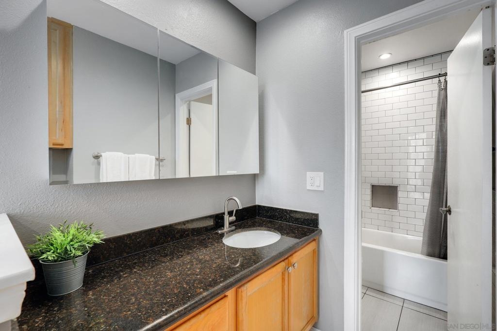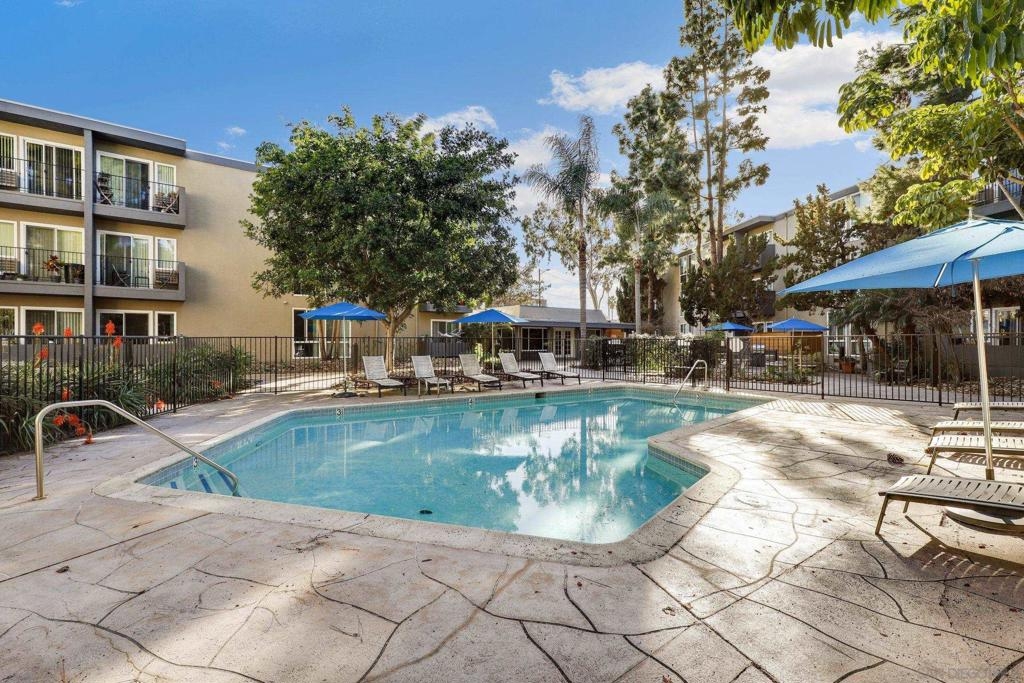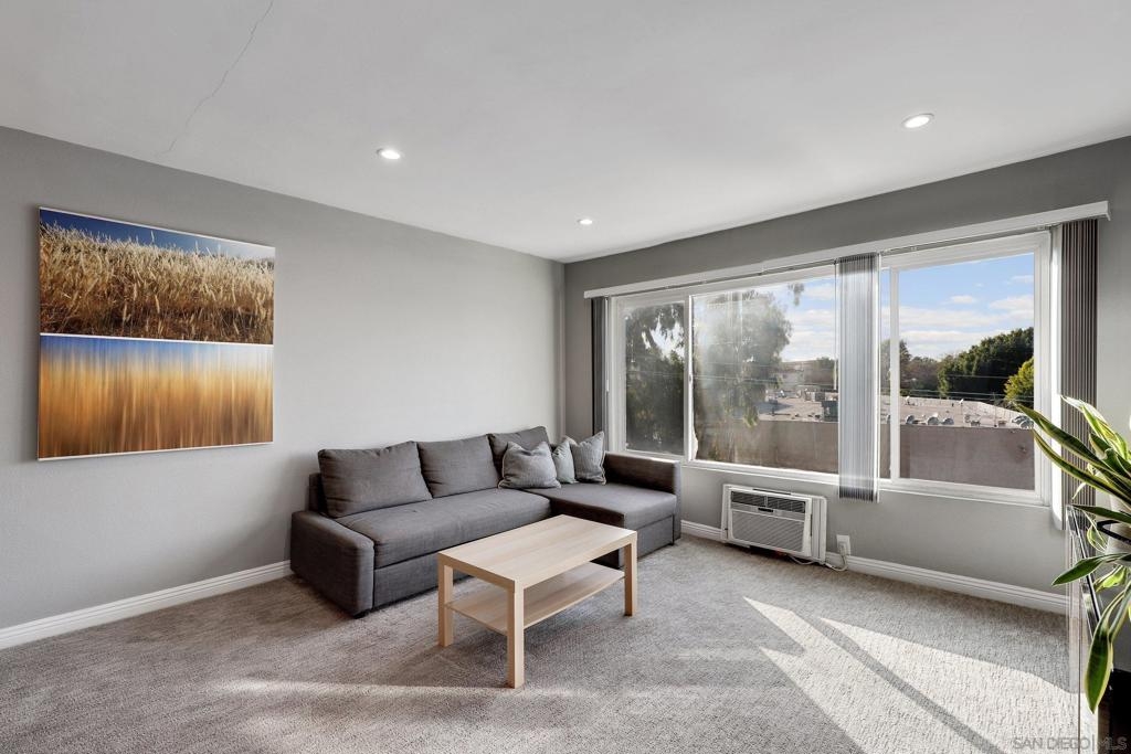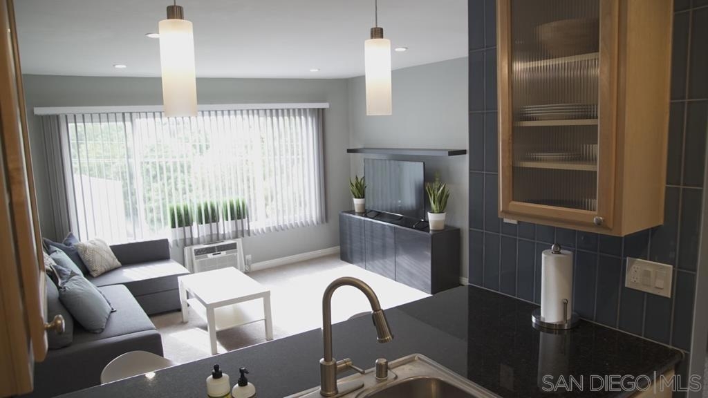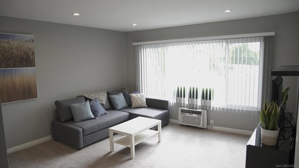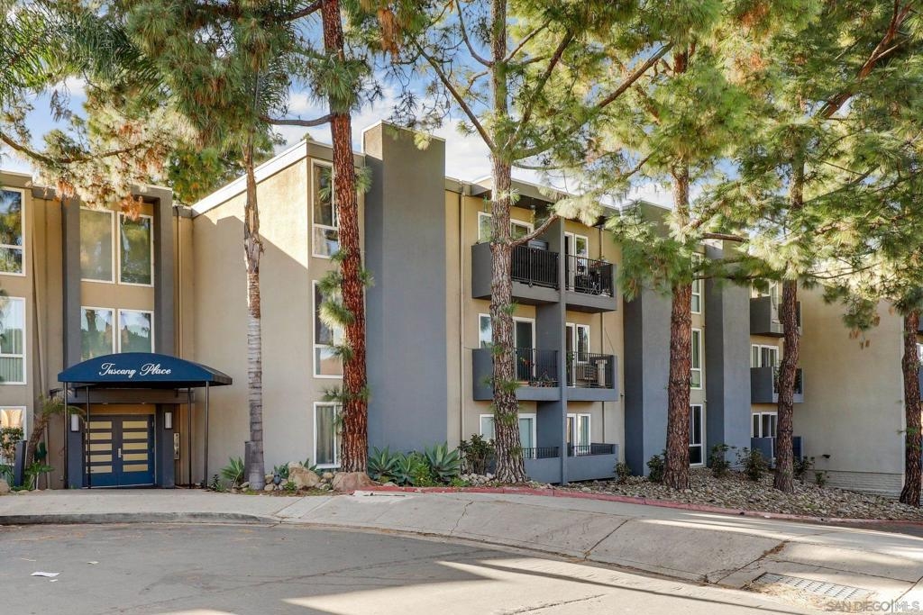 Top Floor Condo nestled within the gated Tuscany Place Complex in San Diego!! Enter this turnkey retreat to find a light and bright floor plan with modern touches throughout. This move-in ready unit features: a fully updated semi-open galley kitchen with stainless steel appliances, newer carpet, the addition of upgraded lighting including new can lights, pendant lights, closet lights and dimmer switches, a wall heater and window A/C unit, a spacious primary bedroom with a fully renovated ensuite bathroom, and so much more!! The Tuscany Place Complex offers its residents access to the community pool, spa, BBQ, laundry area and exercise room, and is one of the few larger complexes that allows short term Airbnb rentals!! The property is located near great shopping, restaurants, SDSU, and has freeway access! Top floor units in this complex have historically sold for $350K or more. This unit includes tons of upgrades and comes sold fully furnished. Perfect for a college student or rental property. FHA & VA Approved!! Don't wait - book a tour before it's gone. Home to be sold fully furnished. Room Dimensions are estimates.