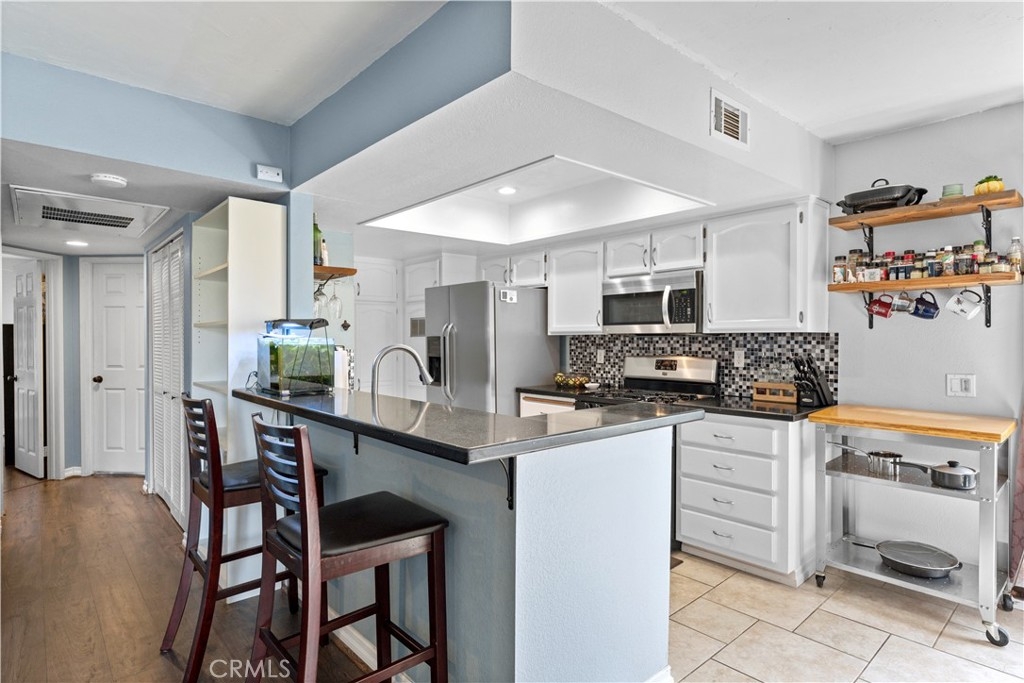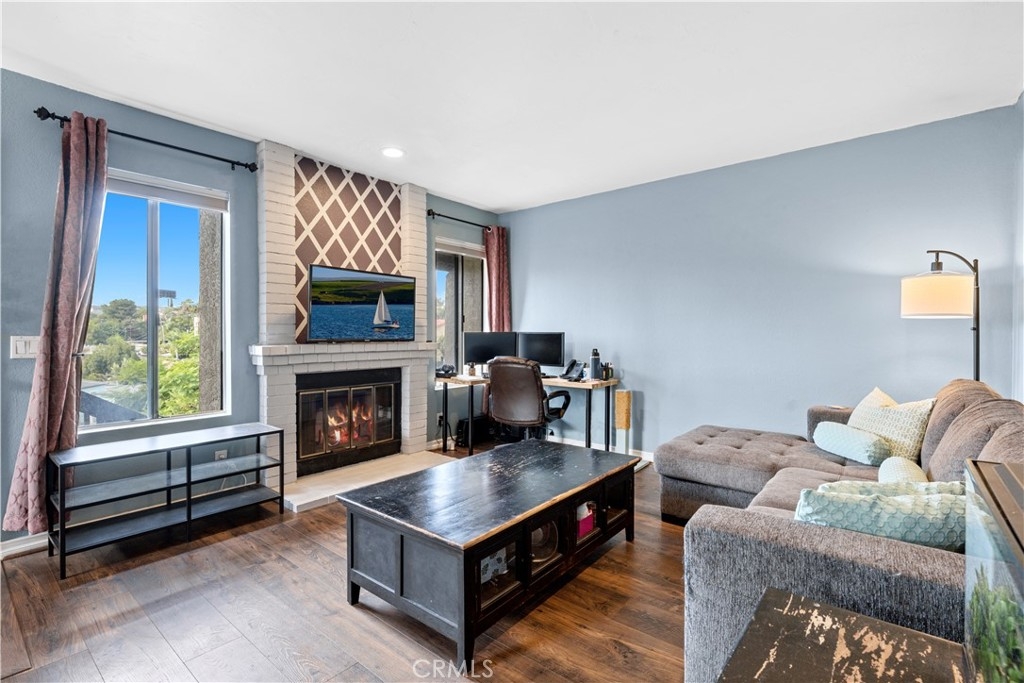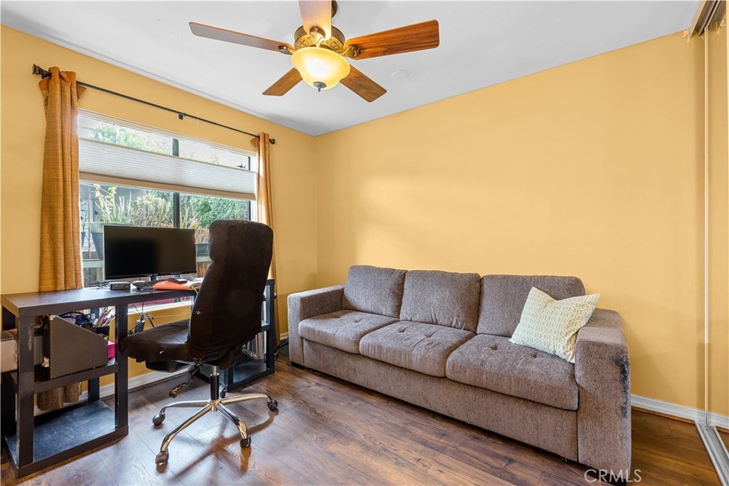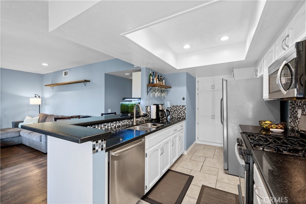 Welcome to this Top Floor Corner End Unit with 2 BR and 2 Bathrooms Open Floor Plan with lots of Natural Sunlight This unit has S/S appliances in the Kitchen & Quartz & Granite Countertops throughout! Nice Dining Area and a breakfast bar. Central A/C & Heat, Ceiling Fans, Recessed Can Lighting, 1yr New Hot Water Heater, 1yr new Exterior Paint, New Laminate Flooring throughout in 2018, 2yr New Cellular Shades, and Full Sized W/D Hookups inside. Brick Fireplace, 2-car deep tandem garage! South Facing & Low HOA of $285mo. includes Water, Trash, Sewer and landscaping!