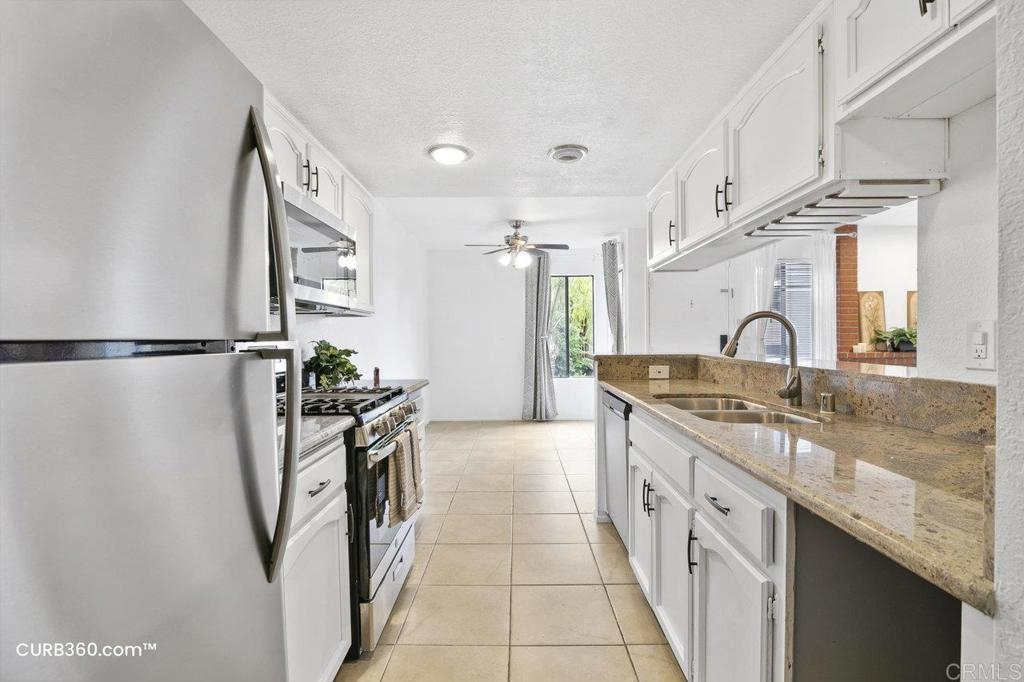 Beautiful 2 Bedroom, 2 Bathroom upgraded unit! This move-in ready 1990 condo features granite countertops, newer applicances, kitchen sink, faucet. Newer flooring, small balcony off primary bedroom. Fireplace in Living Room and tandem 2 car garage. Located close to SDSU (1.1 MILES), walking distance to shopping centers and restaurants. Water and trash included in association fee.