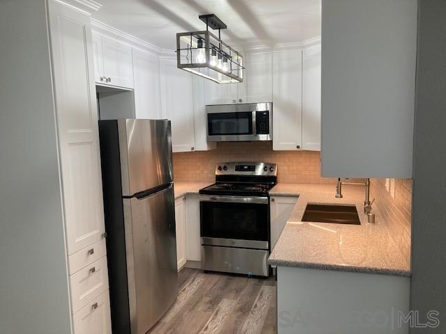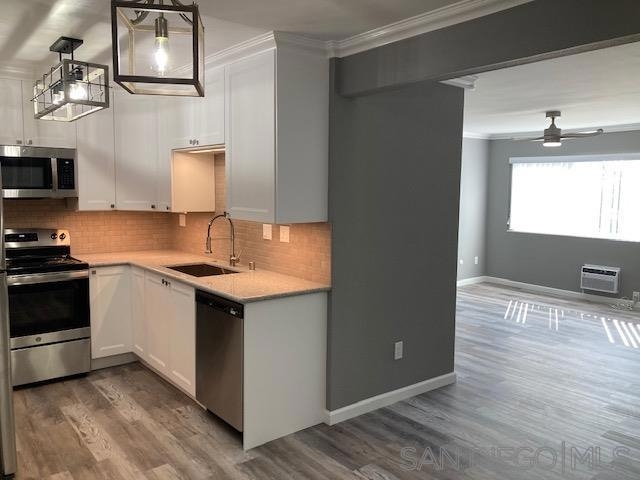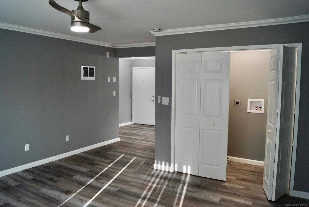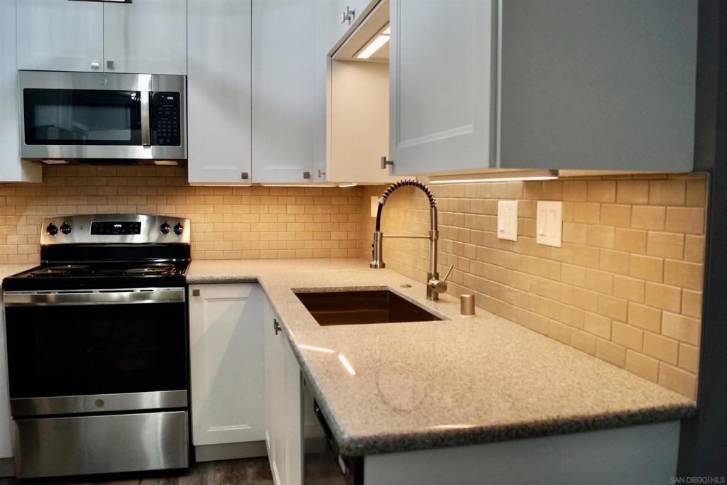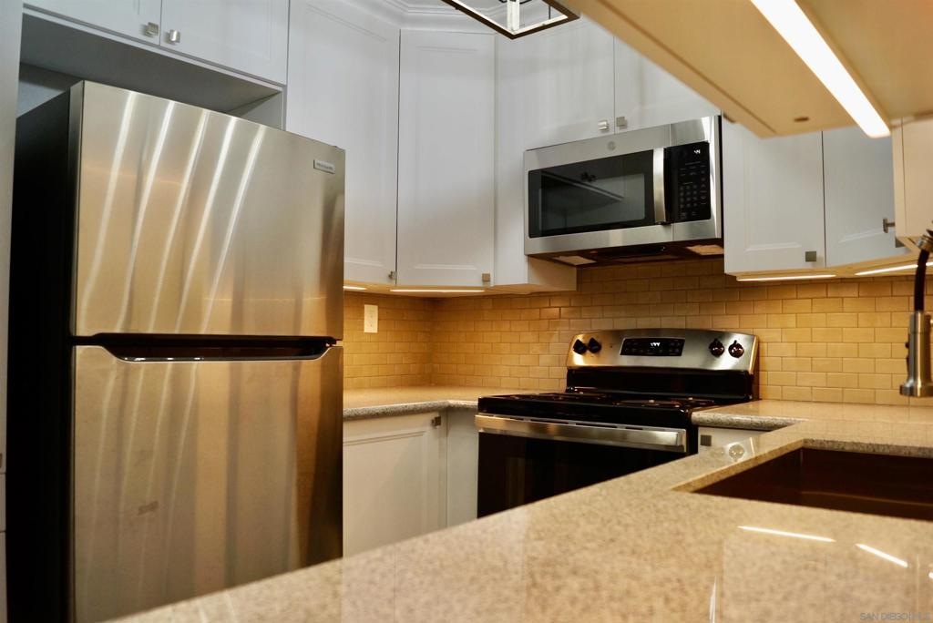 Unique & spacious top floor corner end home with no other homes on either side. The home boasts of modern flare featuring new soft close kitchen cabinetry w/ two lower corner end lazy susans to make those tough to get to kitchen utensils that much easier to access, granite counters w/ a mosaic backsplash, underneath cabinet lighting, & stainless steel appliances in the kitchen. The spa-like bathroom features a large floating vanity, new tub with subway tile surround, & glass shower doors. Additional upgrades include new heaters & A/C unit, all new electrical throughout, new energy efficient lighting & ceiling fans, in-unit laundry, new vinyl dual pane windows in the living room & bedroom, new vinyl plank & carpet floor coverings, designer paint colors throughout, crown molding, three large closets, plenty of storage, and much, much, more! Stairwell & elevator is directly in front of the home for easy access. This home will satisfy the most discerning buyer! Unique & spacious top floor corner end home with no other homes on either side. The home boasts of modern flare featuring new soft close kitchen cabinetry w/ two lower corner end lazy susans to make those tough to get to kitchen utensils that much easier to access, granite counters w/ a mosaic backsplash, underneath cabinet lighting, & stainless steel appliances in the kitchen. The spa-like bathroom features a large floating vanity, new tub with subway tile surround, & glass shower doors. Additional upgrades include new heaters & A/C unit, all new electrical throughout, new energy efficient lighting & ceiling fans, in-unit laundry, new vinyl dual pane windows in the living room & bedroom, new vinyl plank & carpet floor coverings, designer paint colors throughout, crown molding, three large closets, plenty of storage, and much, much, more! Stairwell & elevator is directly in front of the home for easy access. This home will satisfy the most discerning buyer! Complex Features: , Sewer: Sewer Connected