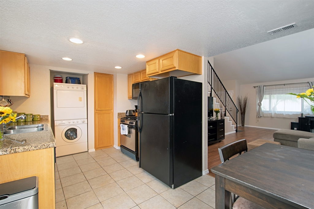 This turn-key, 3BR/2BA home is one of the best values on the market! The light & bright end unit features a large living room w/vaulted ceilings & laminate floors, granite counters in the kitchen, a private master retreat w/dual closets on its own floor, in-unit laundry and fresh paint & carpet. The oversized, paved backyard is perfect for relaxing or entertaining. An unbeatable location with easy access to SDSU & trolley, restaurants, shopping, freeways & more! Hurry, this won't last long!. Neighborhoods: Rolando Village Equipment: Range/Oven Other Fees: 0 Sewer: Sewer Connected Topography: LL