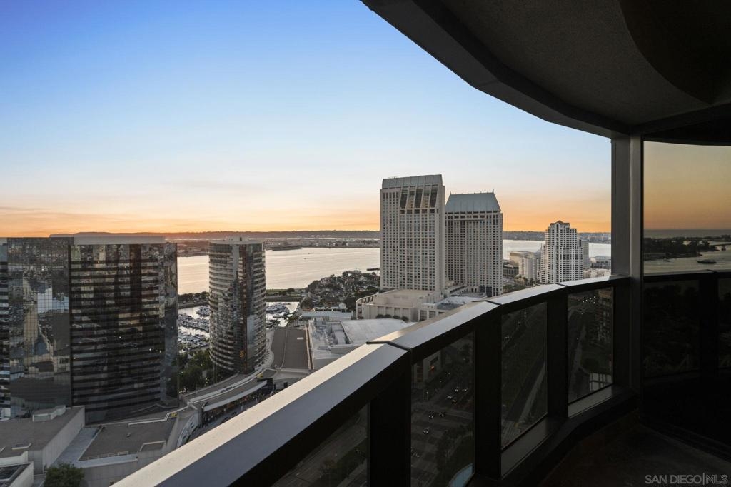 30th-floor bubble unit in the West Tower at the sought-after Harbor Club, featuring panoramic views of the Pacific Ocean, San Diego Bay, Downtown skyline, Coronado, and the Coronado Bridge. This 2-bedroom, 2-bath residence offers 1,474 sq ft of well-appointed living space and a west-facing balcony with steady ocean breezes and sunset views. Harbor Club residents enjoy a full range of amenities including a heated lap pool, fitness center, sauna, club room, outdoor BBQ areas, and 24-hour front desk service. Two secured parking spaces included. Highly walkable location near the Gaslamp Quarter, Convention Center, Seaport Village, shopping, Petco Park, and the Downtown Marina.