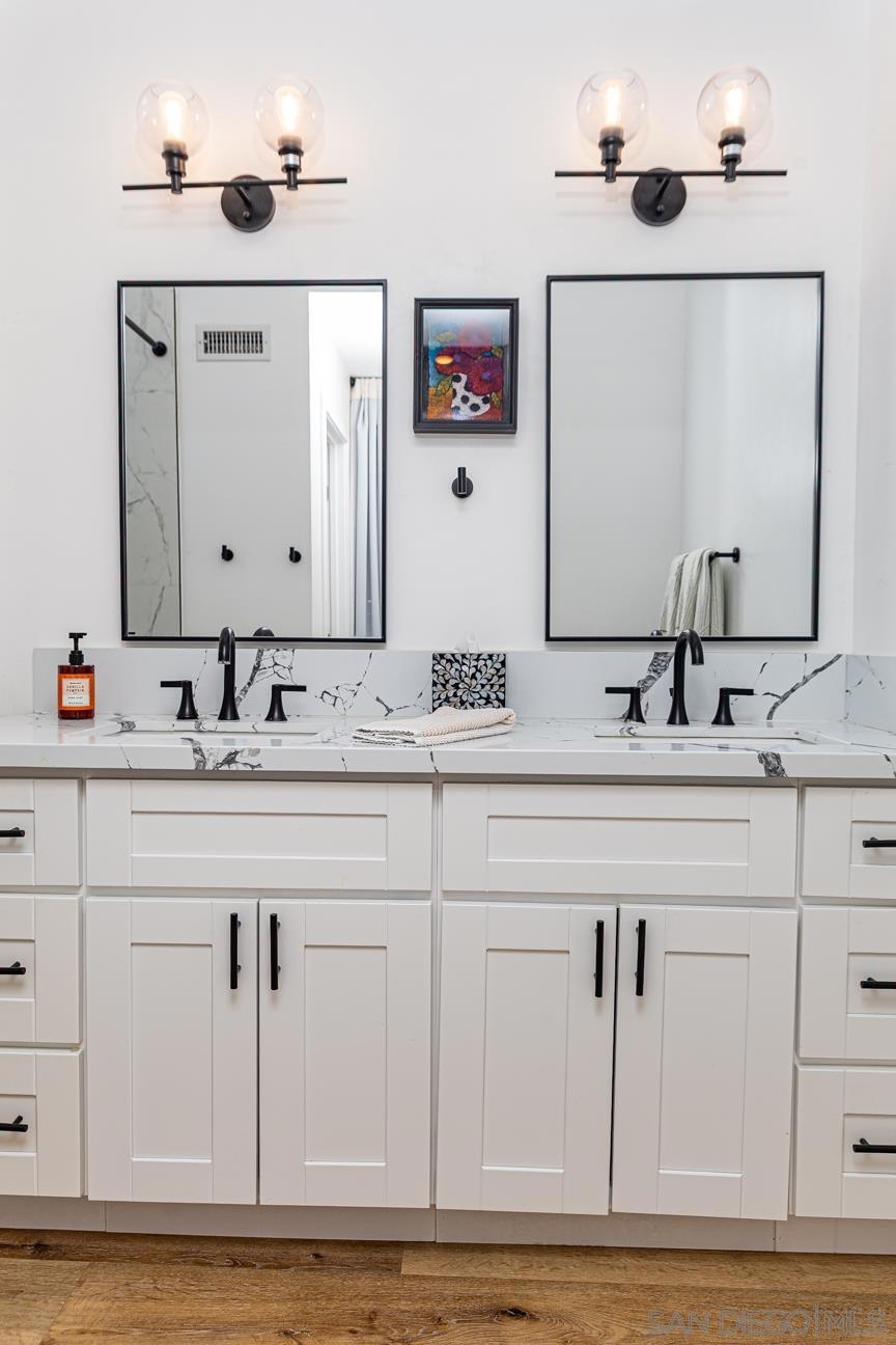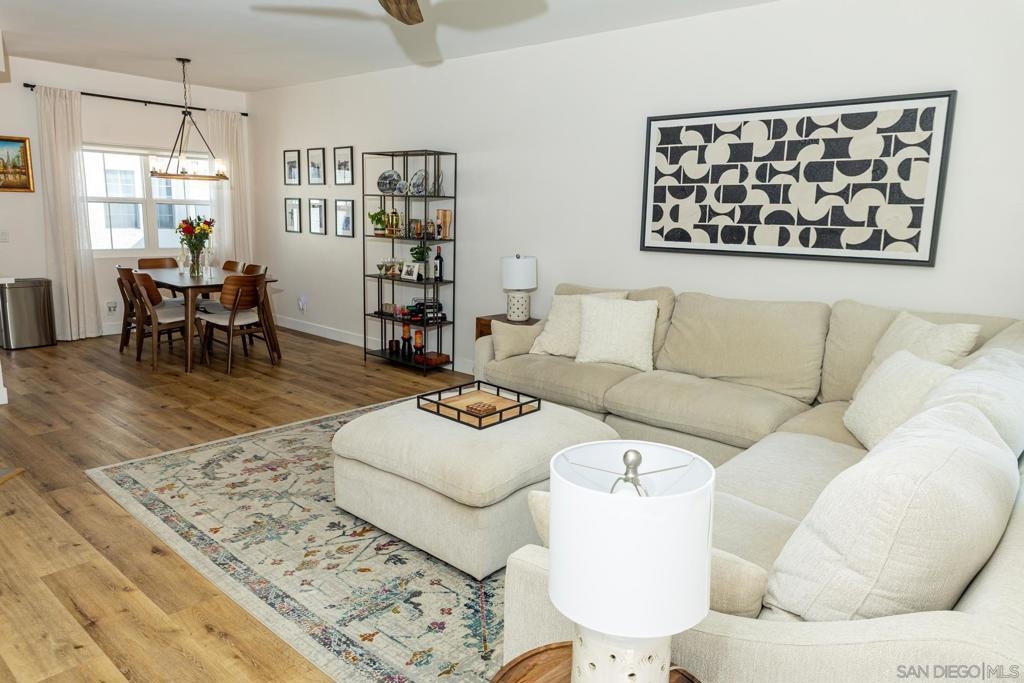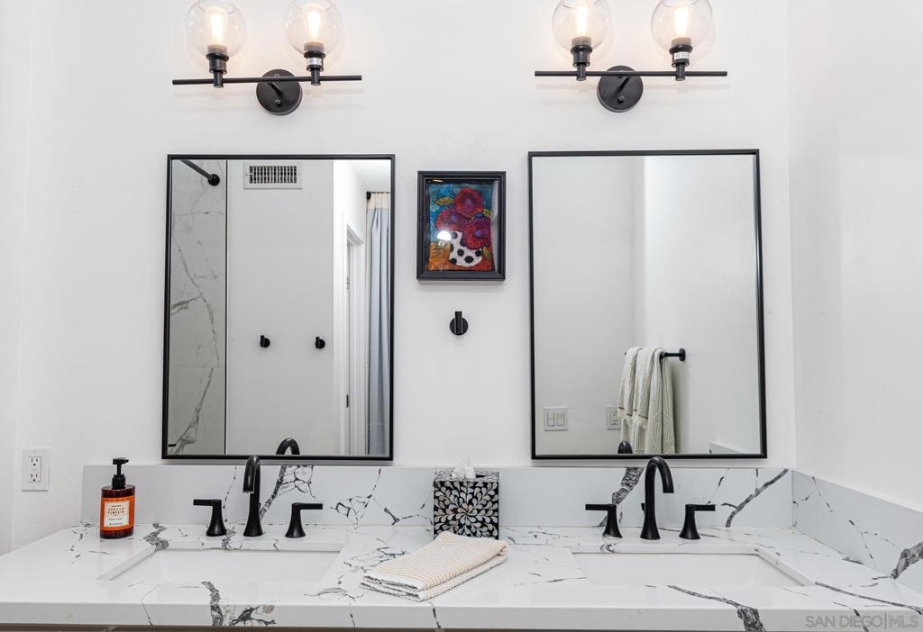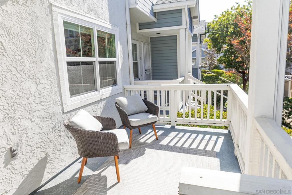 MOVE IN READY. No remodeling or updating needed. Live Your Best Life at Scripps Townhomes! Enjoy year-round San Diego sunshine from your charming rocking chair front porch. Inside, soaring vaulted ceilings and an open floor plan create a bright, airy feel, complemented by durable vinyl plank flooring throughout. The living room, dining area, and kitchen flow seamlessly together, centered around a beautiful fireplace. New windows and light-filtering shades help maintain comfort year-round. The kitchen was completely remodeled in 2022 with white shaker cabinetry, quartz countertops, stainless steel appliances, and modern lighting. Step outside to dine al fresco on the private patio. A stylishly updated half bath completes the main level. Upstairs features two spacious bedrooms, each with upgraded ensuite bathrooms and new blackout shades. A built-in desk on the landing provides a convenient home workspace. Additional highlights include an attached two-car garage with overhead storage, a 2023 full-size stacked washer/dryer, a new roof (2021–2022), and full fumigation in 2023. Scripps Townhomes offers a peaceful, park-like setting with amenities including tennis courts, a sparkling pool, and green space. Conveniently located near top-rated schools, shopping, dining, and entertainment. Don’t miss this move-in-ready gem in one of San Diego’s most desirable communities! New Windows, Light filtering shades were added downstairs to keep the interior temperature comfortable. In 2022, the kitchen was re-imagined to feature crisp, white cabinetry, new stainless steel appliances, quartz countertops and modern accent lighting. Dine al fresco on the back patio. The half bath on the main level has been upgraded with modern flair. Both bedrooms are on the upper level, have upgraded ensuite bathrooms and recently had high-quality black out shades added. A built-in work center in the upstairs landing will help you stay productive when at home. The attached two car garage makes parking a breeze and a ceiling storage rack helps with the holiday decorations. 2023 Full size stacked washer/dryer conveys. A new roof was installed in 2021-2022 and the unit was fumigated in 2023. Scripps Townhomes is a serene, park-like community offering its residents tennis courts, a sparkling pool and a park. Great schools, shopping, dining and entertainment venues are nearby. This truly is an opportunity you do not want to miss!