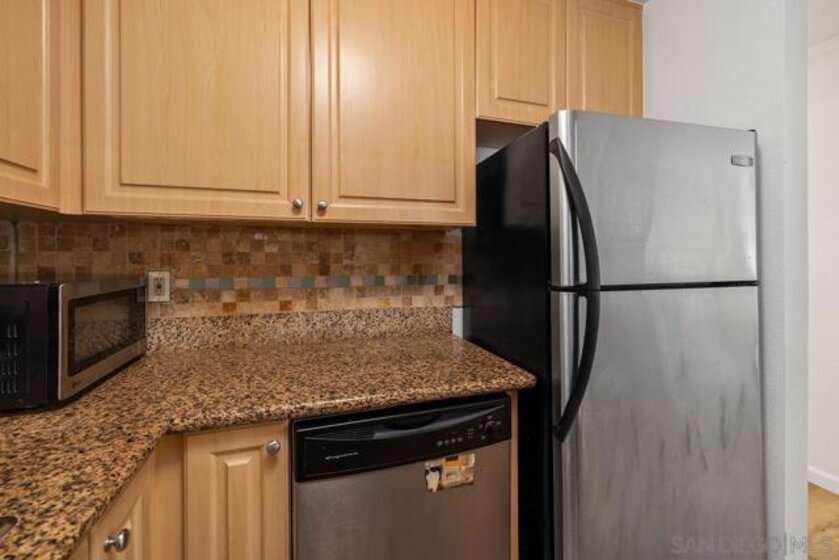 Move-in ready and perfectly situated in a prime location, this unit offers convenience and luxury. Enjoy an open-concept kitchen and living area, ideal for entertaining, with granite counters and stainless appliances. The master bedroom features a spacious walk-in closet and a brand-new dual-sink vanity and shower. The second bedroom and bath are located on the opposite end, making it perfect for a dual-master setup. Plus, the unit boasts brand-new flooring throughout and fresh paint, giving it a modern and refreshed look. You'll also enjoy 2 assigned parking spots for added convenience. The community itself offers a fantastic pool, perfect for relaxation and fun. With its proximity to shopping, restaurants, community parks, and I-15, this unit has it all.