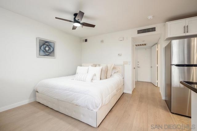 Experience luxury urban living in the heart of the Marina District at the highly desirable ATRIA community, designed by the well-respected architectural team of Rob Wellington Quigley. This beautifully upgraded studio is perfectly situated just steps from the Gaslamp Quarter, Petco Park, Seaport Village, the Convention Center, Ralphs grocery, and San Diego’s finest dining and waterfront attractions. Offering over $20,000 in recent upgrades, this residence showcases new luxury vinyl plank flooring, fresh designer paint, and updated kitchen and bathroom cabinetry. The kitchen is enhanced with a brand new LG stainless steel refrigerator and stove, complemented by a new in-unit washer/dryer, new light fixtures, and stylish hardware throughout. Additional improvements include new kitchen and shower faucets, a refinished tub, new medicine cabinet, contemporary ceiling fan, and a Nest thermostat for modern comfort and efficiency. Enjoy granite countertops, stainless steel appliances, a spacious walk-in closet, and central air conditioning. One assigned underground parking space included. ATRIA offers premier amenities including a rooftop BBQ and gathering deck, media room, and 24-hour fitness center, perfect for those seeking a vibrant, walkable, and sophisticated coastal lifestyle.