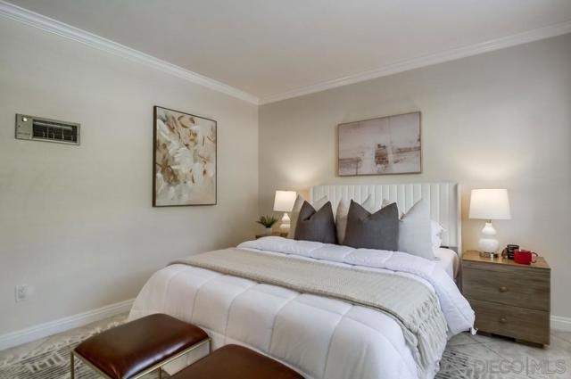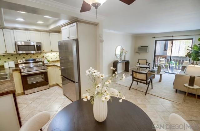 Welcome to Quail Creek Mira Mesa! This bright and spacious ground-floor unit features an open floor plan and beautiful tile flooring throughout. The gourmet kitchen boasting custom-built cabinets lining every wall for ample storage, marble countertops, tile backsplash, and brand-new stainless steel appliances, including a refrigerator, stove, and microwave. The bedroom includes a walk-in closet. Step outside to a private, covered patio with additional storage space. The unit comes with two assigned parking space, one is covered, another is uncovered. Enjoy community amenities, including a pool, spa, and tennis court. The location offers easy access to the I-15, schools, Miramar College, and a wide variety of grocery stores, restaurants. Close to Marine Corps Air Station Miramar.