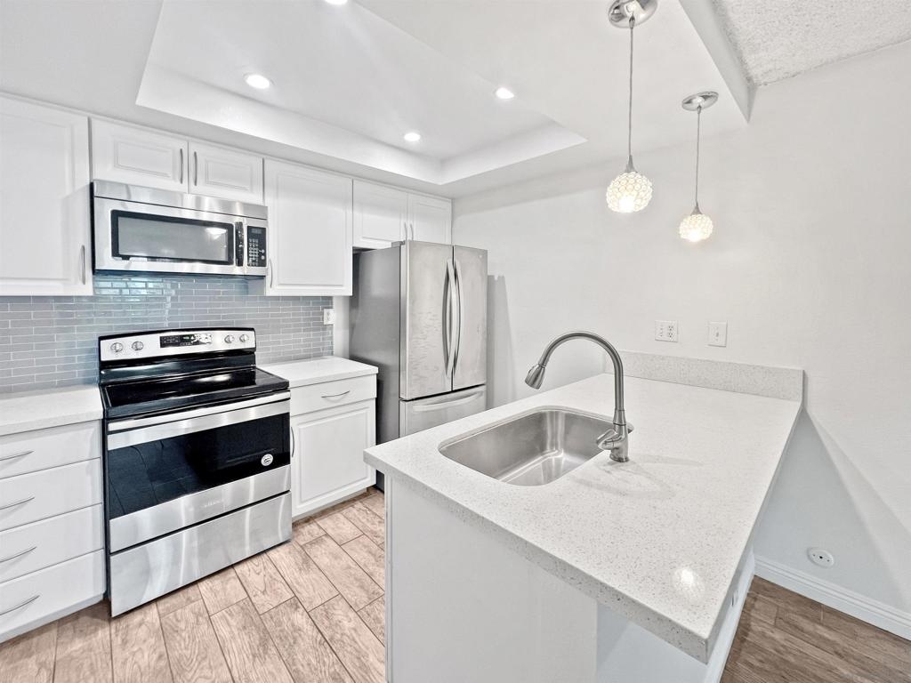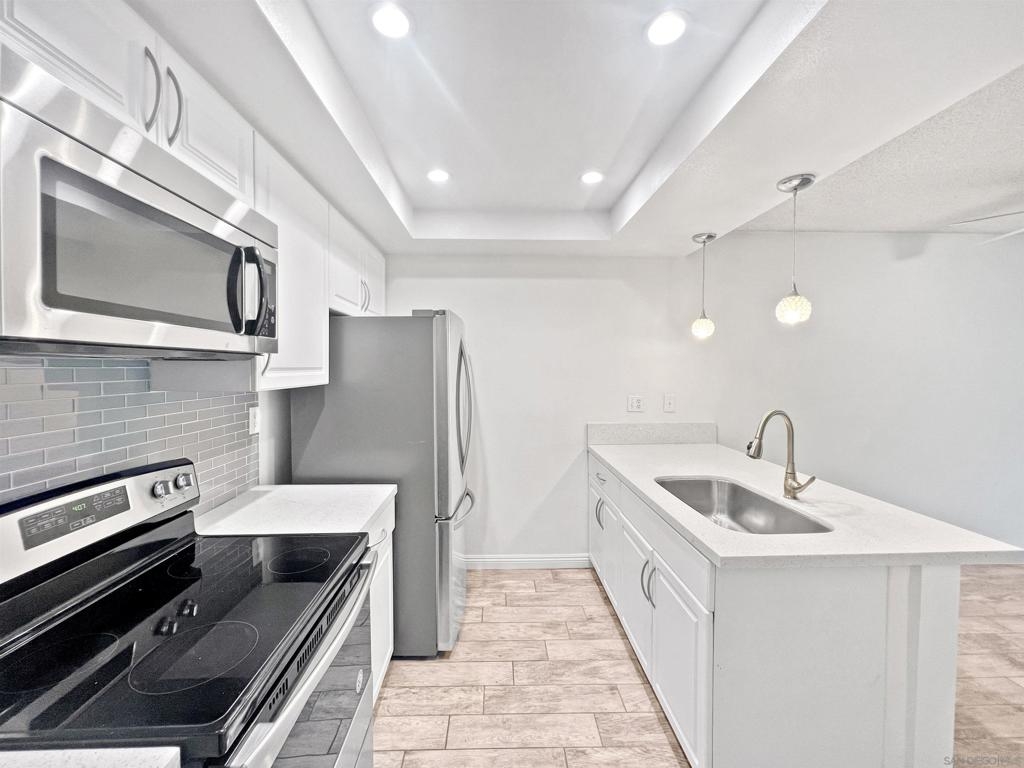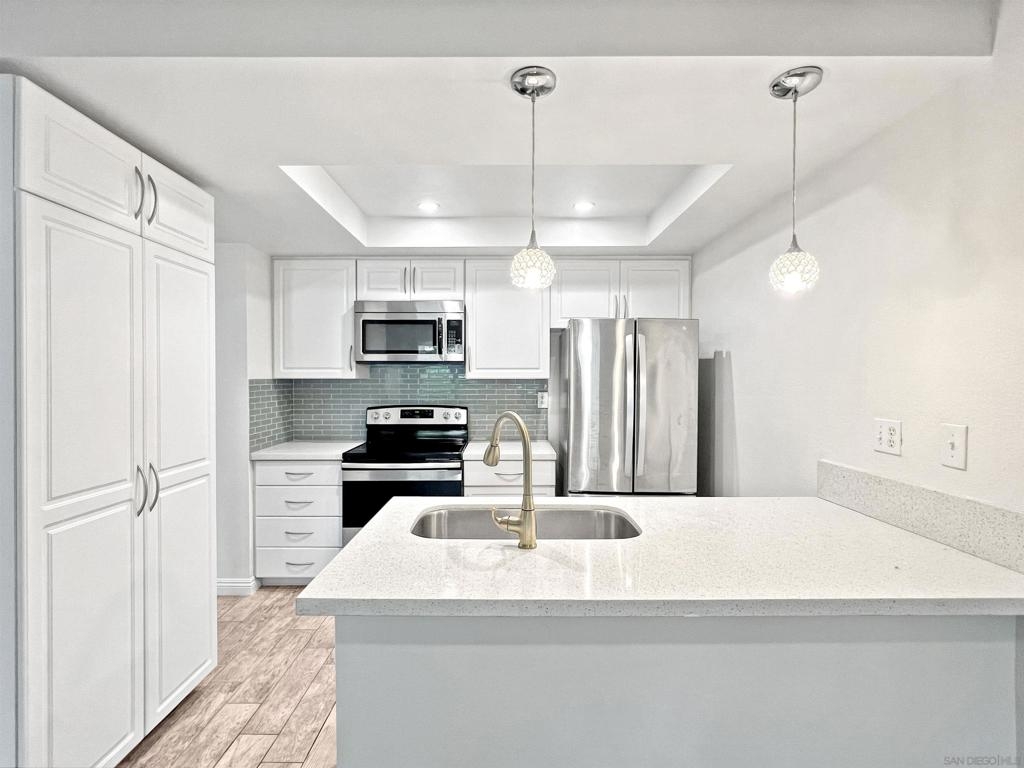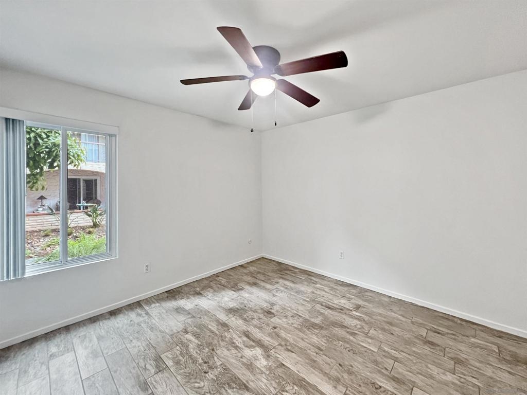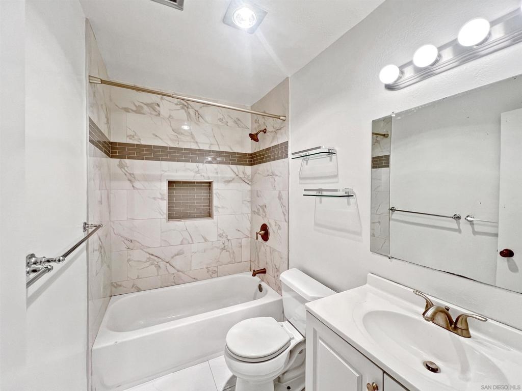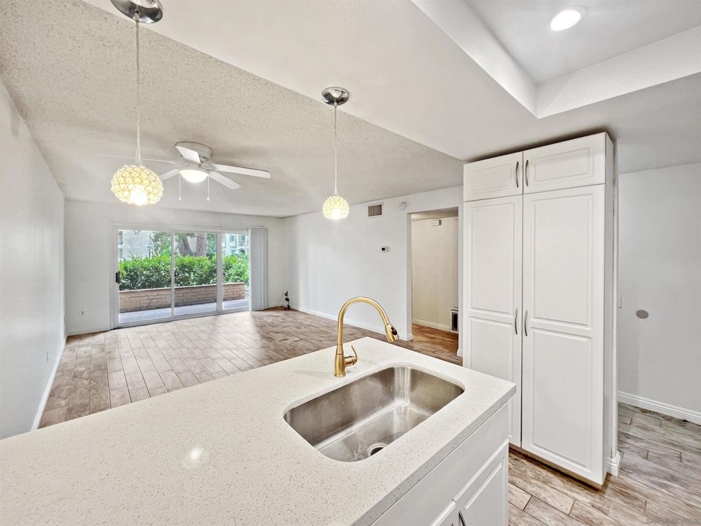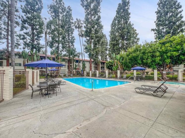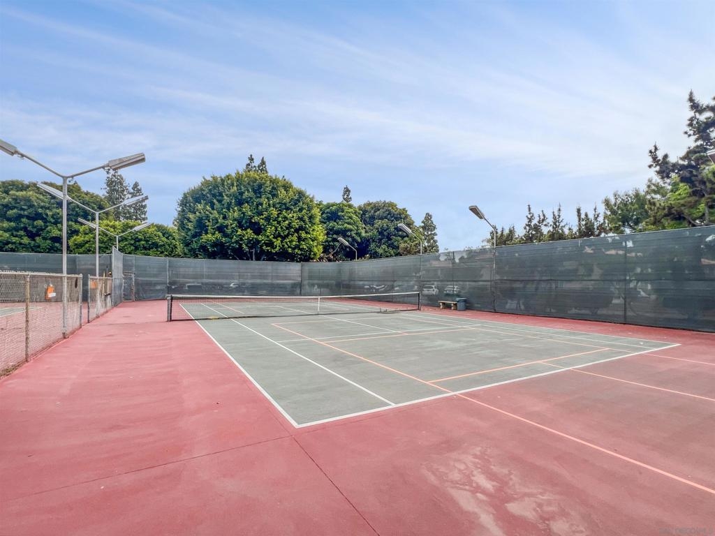 Welcome to this charming 2-bedroom, 1-bathroom condo located in the heart of Mission Valley. This desirable end unit is situated on the first floor, ensuring no neighbors below or on one side for added privacy. The condo features an updated kitchen and elegant tile flooring throughout, providing a modern and cohesive look. The spacious living area is complemented by central air conditioning and heating, ensuring comfort all year round. Step outside to your private patio, conveniently located just steps from the community pool, spa, and barbecue area – perfect for relaxing or entertaining. One of the unique advantages of this unit is its proximity to the community laundry room, situated directly across the hall, offering the convenience of laundry facilities without the noise and upkeep in your own space. The HOA takes care of water, sewer, and trash services, allowing for hassle-free living. The community offers a wealth of amenities, including multiple swimming pools, tennis courts, basketball court, and expansive lush green open spaces, creating a serene and active environment for residents. Conveniently located with quick access to both the I-15 and I-8 freeways, this condo is ideally positioned for commuters and those looking to explore the best of San Diego. Nearby attractions include San Diego State University, Snapdragon Stadium, Costco, IKEA, Lowe's, Fashion Valley Mall, and a variety of shops and restaurants, ensuring you are never far from what you need. Don't miss the opportunity to make this delightful condo your new home in Mission Valley.