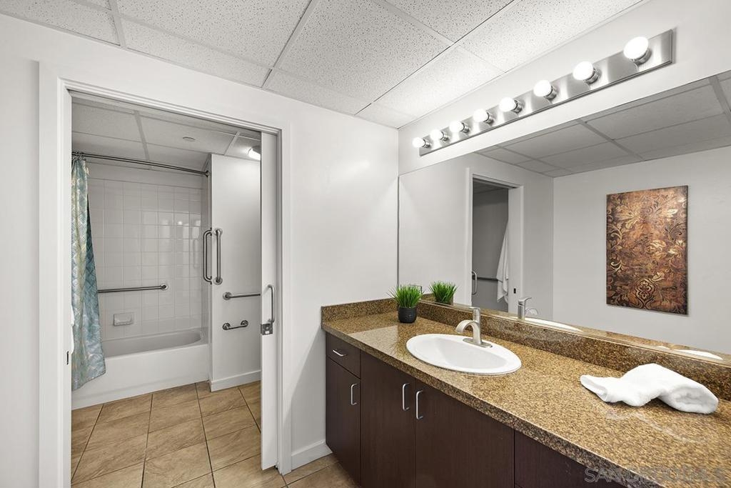 Welcome to the prime locale in Smart Corner, “The Point” floorplan, where walls of glass showcase panoramic views spanning Point Loma, the Pacific Ocean, San Diego Bay, and the Coronado Bridge from this premier south-facing residence. This spacious 1-bedroom open-concept layout is a blank slate for your vision, readily accommodating a 2nd bedroom or private den—a simple customization of adding drywall and a door unlocks the full potential of this exceptional urban home. You’ll love the modern style with loft-inspired character, complete with original bamboo flooring, exposed concrete accents, all opening to a huge balcony, a true standout feature ideal for entertaining, dining al fresco, or simply relaxing while soaking in the sweeping skyline and coastal vistas. The kitchen features stainless appliances, recessed lighting, and an eat-at bar for casual dining. Additional highlights include an upgraded washer and dryer, two excellent, separate parking spaces (rare P1 and a P3). Whether you’re seeking a stylish city residence, a smart investment, or a flexible live/workspace, this home offers unmatched views with a central Downtown location! VA approved. Smart Corner is an all-encompassing hub of work, play, shop, and live! It is conveniently located near the 163 freeway, I-5, Highway 94, Petco Park, the Gaslamp Quarter, San Diego City College, and Balboa Park. A trolley station located below the development ensures Smart Corner has all an urban dweller could want. Amenities include 20th floor roof-top sun deck with forever views of the city skyline, 10-person hot tub, barbecue area, wet bar, 2nd floor Fitness Center, PLUS on-site management, and security.