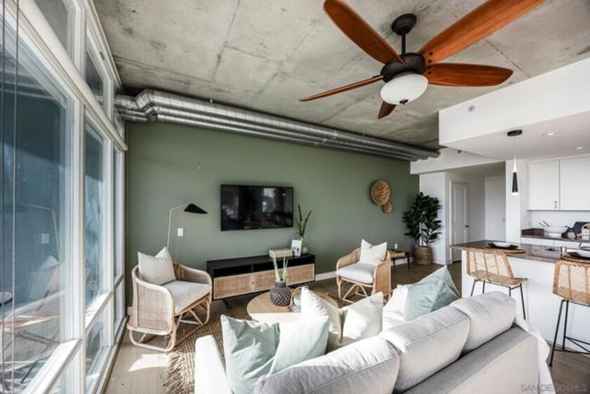 Located in the vibrant East Village neighborhood of Downtown San Diego, this completely updated condo is situated in an ideal location, just minutes from the Gaslamp District and everything downtown San Diego has to offer. This modern-style condo offers an amazing layout for entertaining, featuring an open-concept living room and kitchen with an 8th floor east-facing balcony. Recent upgrades include new luxury vinyl flooring, paint throughout, and all new appliances. Mere steps from public transportation, easy access to all major freeways while only minutes from top-rated beaches. Entering the home, you will be met with in-unit laundry, hallway linen closet, and a full bathroom. Exposed ducting, cement ceilings and an optional floor plan make for an amazing live/work scenario. Two tandem parking spaces, central heating, and air, roof top barbecues and hot tub, along with 2nd-floor gym. Perfect for a first-time buyer, investor or someone looking to downsize.