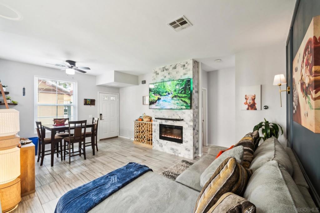 Discover this Beautiful Upgraded condo! in the heart of Sabre Springs, boasting modern upgrades and smart features. Equipped with a Nest Thermostat, Apple WiFi, Schlage smart lock, Ring Doorbell, and Recessed/Hue lights controlled by touchpad, this home offers both convenience and comfort. Enjoy marble countertops, stainless steel appliances, a luxurious rain shower, Spa Tub, upgraded vanities, and custom accent walls. With tile floors keeping the home cool, a private tiled patio, and end unit privacy facing the pool and spa, this condo offers a serene retreat. Say goodbye to Mello Roos and enjoy the acclaimed Poway Unified School District. Conveniently located near shopping, restaurants, freeways, and trails, this condo is a must-see!" Close to shopping, restaurants, freeways, Biking, hiking trails, Costco, Best Buy, Award winning Schools!! Discover this Beautiful Upgraded condo! in the heart of Sabre Springs, boasting modern upgrades and smart features. Equipped with a Nest Thermostat, Apple WiFi, Schlage smart lock, Ring Doorbell, and Recessed/Hue lights controlled by touchpad, this home offers both convenience and comfort. Enjoy marble countertops, stainless steel appliances, a luxurious rain shower, Spa Tub, upgraded vanities, and custom accent walls. With tile floors keeping the home cool, a private tiled patio, and end unit privacy facing the pool and spa, this condo offers a serene retreat. Say goodbye to Mello Roos and enjoy the acclaimed Poway Unified School District. Conveniently located near shopping, restaurants, freeways, and trails, this condo is a must-see!" Close to shopping, restaurants, freeways, Biking, hiking trails, Costco, Best Buy, Award winning Schools!!
