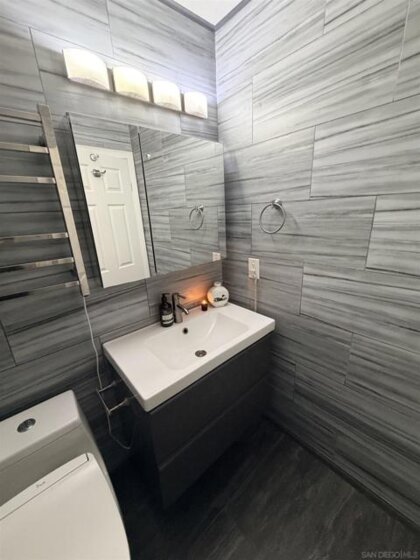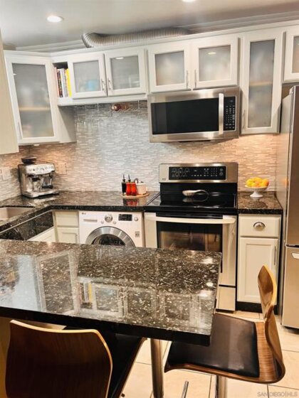 This bright unit is nested in a peaceful green landscaped cul-de-sac open space, with its own very pleasant breezy micro-climate coming from the ocean. Spectacular mountain views. Easy access to I-15 and I-56 which takes you for just minutes to the breathtaking Del Mar beaches and sunsets. You are conveniently close to shopping, dining, entertainment and more. Located in the award-winning top-rated Poway Unified School District. Spacious living area flows smoothly into a modern kitchen with granite countertops and custom wooden cabinetry. Stairs are equipped with hickory hardwood and the second floor features 2 generously sized bedrooms with laminate and 1 gorgeously remodeled with Italian tile bathroom. In the era where energy efficiency is a critical item, mentioning that this home was purposely buildup to have natural airflow throughout carefully laid-out floorpans is important. In this outline, an ultra efficient Pioneer mini split AC/Heater system is conditioning all the spaces well with a unit in the living room and one in a bedroom. This modern residence comes with a Ring Video doorbell which enables to manage your home security remotely from your phone; Honeywell lock that is also controlled remotely to lock/unlock via an app; LED lighting and fixtures throughout. Newly installed dual vinyl windows that contribute to the energy efficiency and comfort as well. Most furniture and appliances are included (ask seller’s agent for detail).