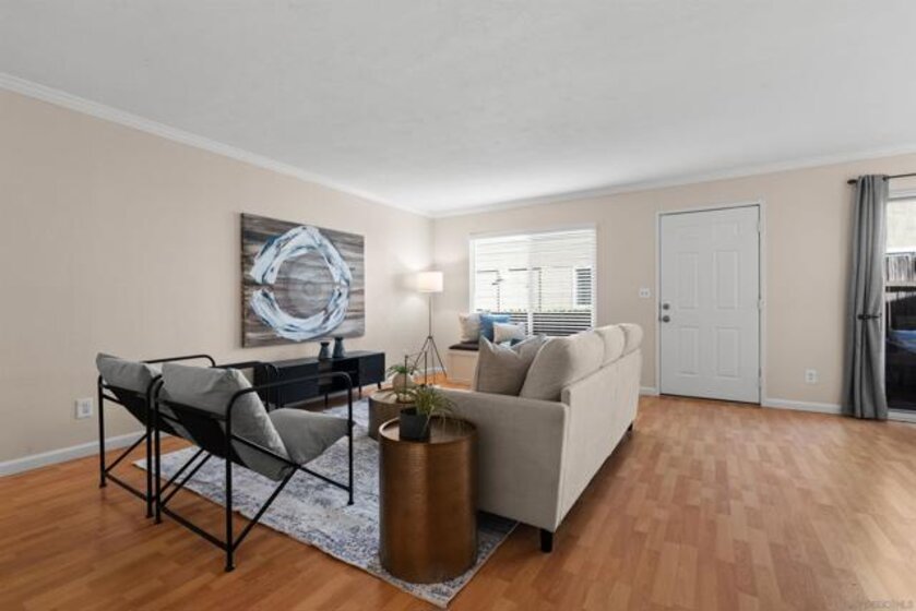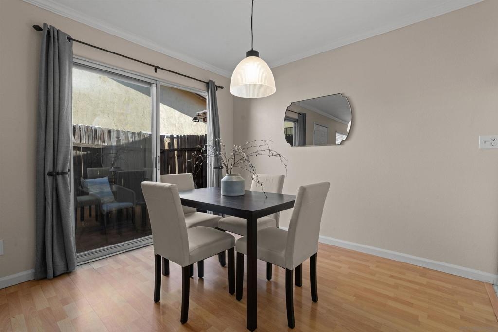 Welcome home to this light and bright 2BR/1.5BA residence in a brilliant community with a pool, located in the sought-after Poway Unified School District. Enjoy laminate wood floors, a spacious living room, crown molding downstairs, dual-pane windows, and a private patio with sliding door—perfect for relaxing. Includes in-unit washer & dryer, a spacious primary & secondary bedroom, and parking with 1 shared garage space + driveway. Conveniently close to Costco, shopping, dining, and quick access to I-15 & SR-56. A wonderful place to call home! This home offers a great blend of comfort and convenience with a functional floor plan, ideal for everyday living. The bright living space opens to a private patio for easy indoor-outdoor enjoyment. Upstairs you’ll find a generously sized primary bedroom plus a second bedroom—perfect for guests, a home office, or hobby room. Enjoy the peaceful community setting with mature landscaping and a refreshing pool, all while being just minutes from major shopping centers, restaurants, and commuter freeways.