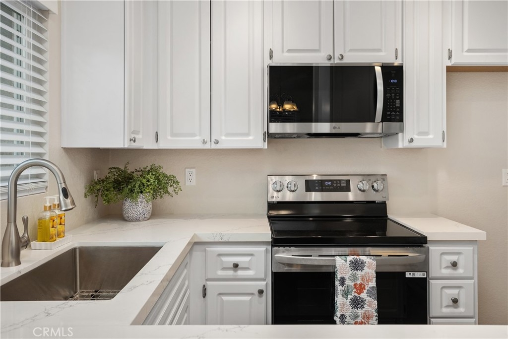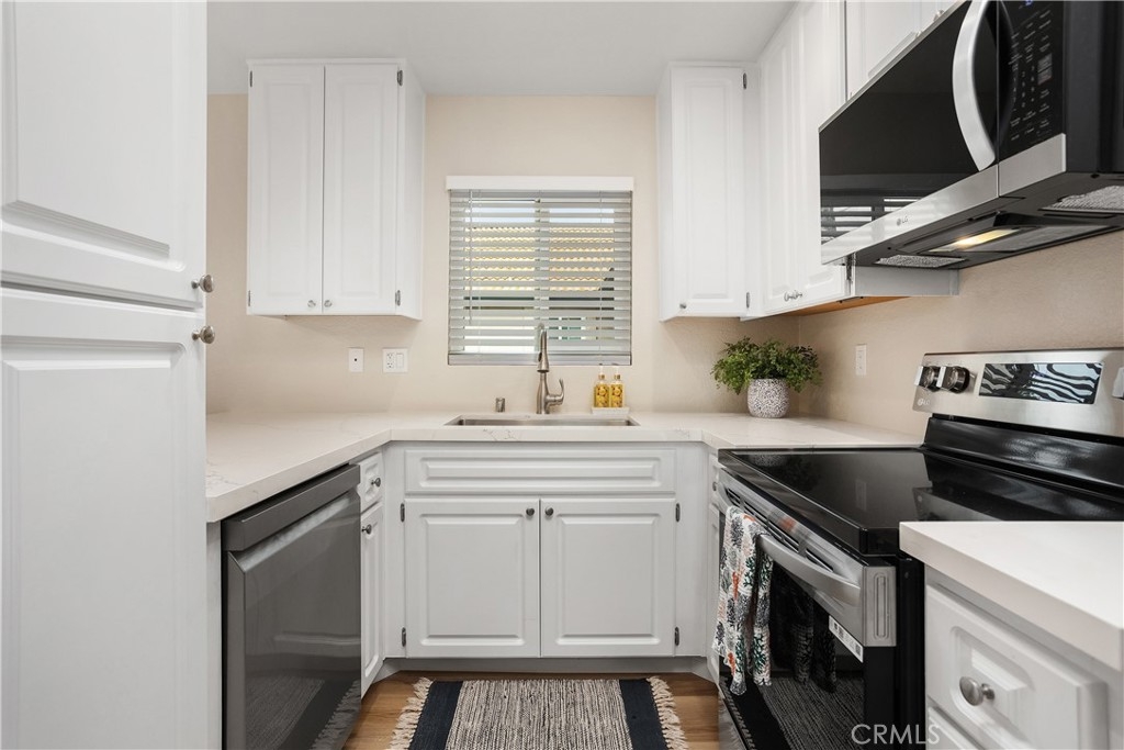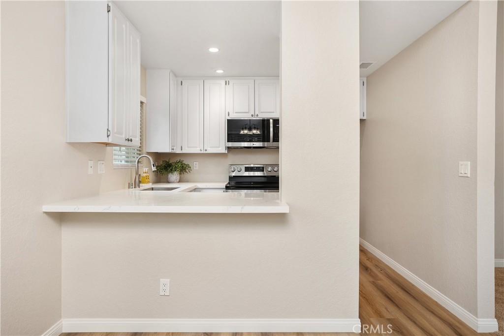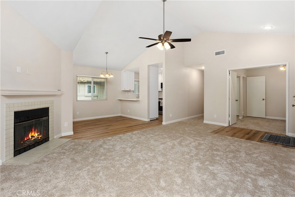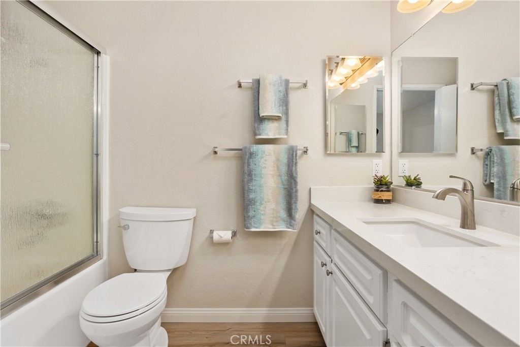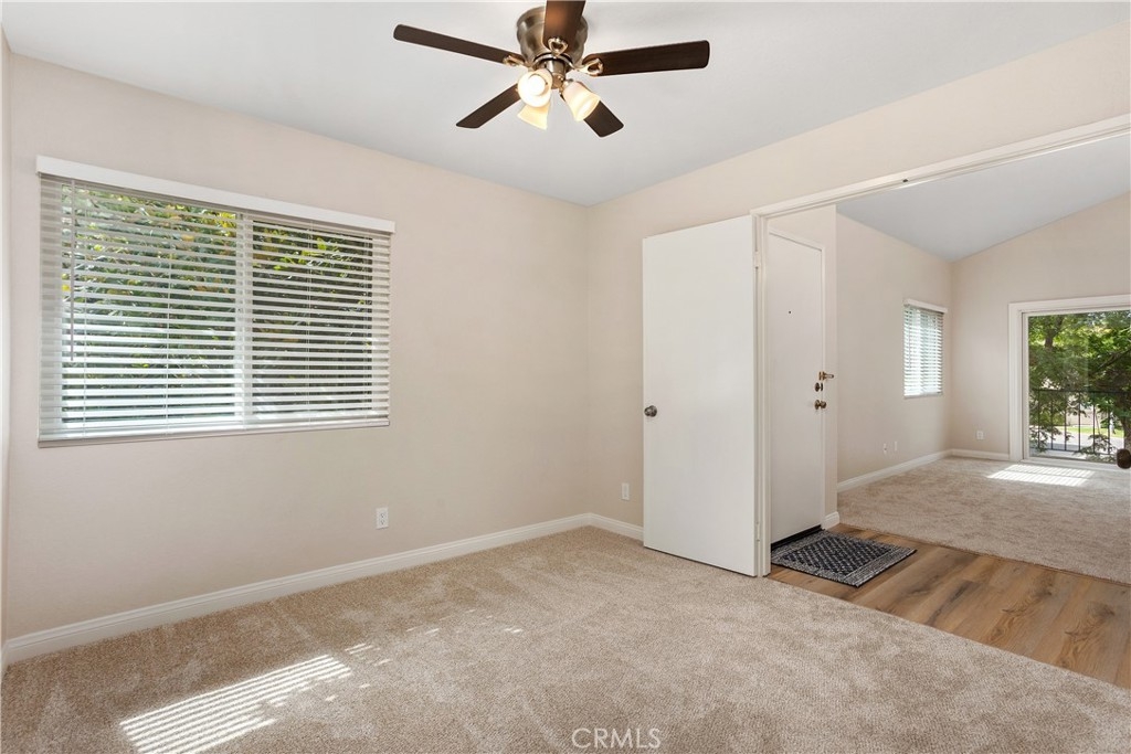 This remodeled turnkey upper corner home is located in the vibrant and desirable community of The Falls at Camino Bernardo. This bright and airy open floor plan comes complete with new paint, all new flooring and baseboards, new countertops, new appliances, new ceiling fans throughout, new lighting, new closet doors, new blinds and newly resurfaced deck area. Also, the entire HVAC system was replaced in 2023 and the water heater was replaced in 2020. Stepping into the entryway, you will notice the fresh paint, luxury vinyl plank flooring and carpet, a vaulted ceiling, a fireplace and a ceiling fan high overhead the spacious living room. Straight ahead from the entry way is the dining area, complete with a new chandelier and charming breakfast bar, perfect for sharing the morning with family. Beyond the breakfast bar is the newly remodeled kitchen, featuring beautifully refaced cabinets, new quartz countertops, new stainless steel appliances, large stainless steel sink and a new faucet. At the end of the hall is the primary bedroom, complete with new large mirrored closet doors and an ensuite bathroom with a gorgeous new vanity. This well-appointed unit also includes in unit washer and dryer closet, a refreshed second bathroom and 2 spacious bedrooms. The Falls features a host of different amenities, including a refreshing pool, relaxing jacuzzi, tennis courts, and a fitness center. Located next to excellent dining, shopping, freeway access and well-rated schools, you will love this Rancho Bernardo beauty!