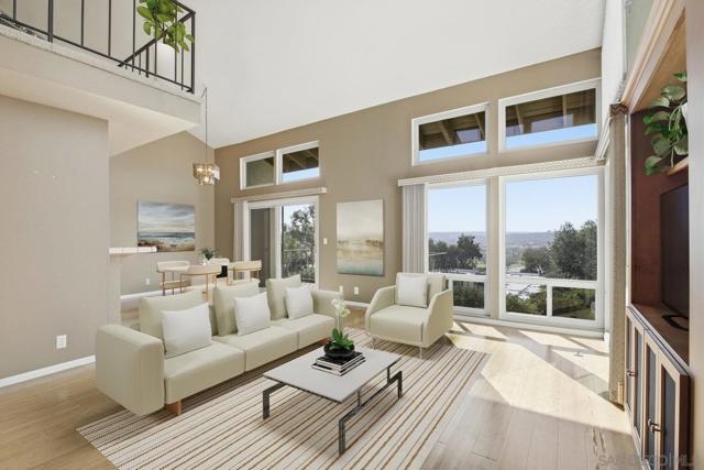 VIEWS VIEWS VIEWS! This 3 Bedroom + LOFT, 3 Full Bath Unit lives like a Single-Family Home with an oversized 2 car Garage, newer dual pane windows & doors, FULLY OWNED SOLAR, and tankless water heater. Pull out shelves & pantry in kitchen with eat in area that opens up to dining area. Vaulted ceilings & Panoramic views of the mountains, city, golf course with magnificent sunsets! Spacious primary suite with walk in closet, soaking tub and separate shower with an additional patio. Dual ensuite bedrooms each with private bath and decks. This is a steal with low HOA dues that include a community Pool and spa.