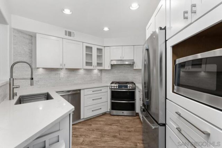 Elegantly upgraded and bathed in natural light, this beautiful corner unit in Carmel Mountain Ranch offers a perfect blend of comfort, style, and functionality. The open, airy floorplan features Italian porcelain plank tile flooring throughout, adding both sophistication and durability. The spacious loft provides an ideal space for a home office or additional living area. Culinary enthusiasts will appreciate the high-end kitchen appliances, thoughtfully designed to inspire creativity. Thoughtful upgrades, including a newer HVAC system, recently replaced hot water heater and roof, and timeless plantation shutters, enhance both beauty and practicality. Enjoy a serene garden and pool views from your private haven. You will appreciate the convenience of an attached two-car garage. Located in the highly sought-after Rancho Bernardo School District, this home offers easy access to shopping, dining, and major freeways, while the HOA provides exceptional amenities including a sparkling pool, spa, BBQ areas, and impeccably maintained grounds—creating a lifestyle of ease and elegance. Elegantly upgraded and bathed in natural light, this beautiful corner unit in Carmel Mountain Ranch offers a perfect blend of comfort, style, and functionality. The open, airy floorplan features Italian porcelain plank tile flooring throughout, adding both sophistication and durability. The spacious loft provides an ideal space for a home office or additional living area. Culinary enthusiasts will appreciate the high-end kitchen appliances, thoughtfully designed to inspire creativity. Thoughtful upgrades, including a newer HVAC system, recently replaced hot water heater and roof, and timeless plantation shutters, enhance both beauty and practicality. Enjoy a serene garden and pool views from your private haven. You will appreciate the convenience of an attached two-car garage. Located in the highly sought-after Rancho Bernardo School District, this home offers easy access to shopping, dining, and major freeways, while the HOA provides exceptional amenities including a sparkling pool, spa, BBQ areas, and impeccably maintained grounds—creating a lifestyle of ease and elegance.