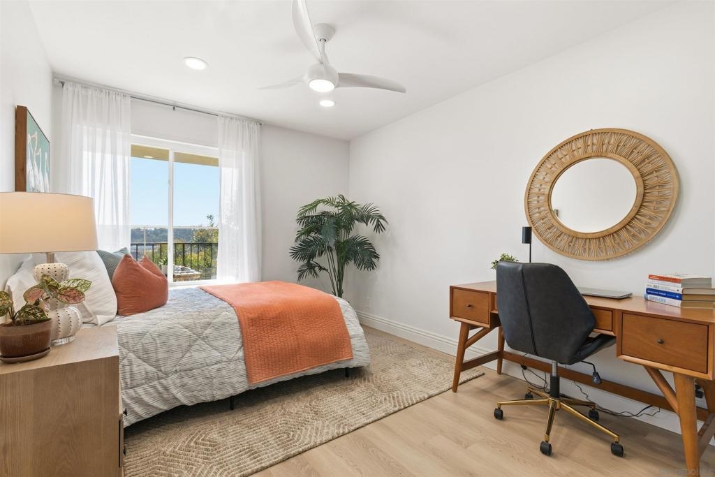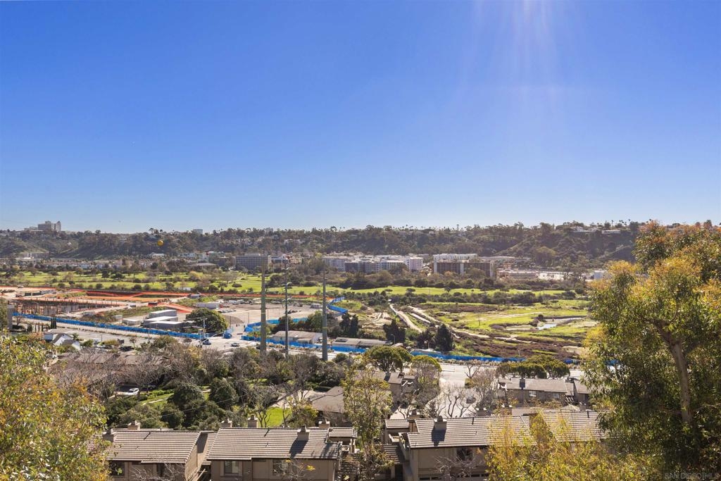 Incredible top-floor corner condo with sweeping VIEWS from every room, in the heart of Fashion Valley tucked up in the hills and just blocks from USD. This exceptional home offers the perfect blend of privacy, natural light, and indoor-outdoor living—highlighted by a massive balcony with 180° Mission Valley vistas and peek ocean views to enjoy year-round. Inside, an open and airy layout shines with modern upgrades including light oak LVP flooring throughout, an updated kitchen and baths, and a freshly painted interior. The spacious primary suite features a large walk-in closet, dual vanities, and a dual-head shower. Additional perks include assigned garage parking with storage. Ideally located minutes to University of San Diego, Mission Bay trails and parks, beaches, major freeways, and the trolley—perfect for students, professionals, or anyone who wants peaceful living close to it all. HOA has approved adding in unit laundry. A must-see!