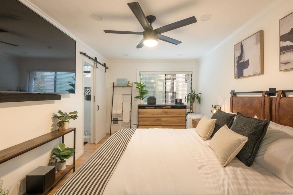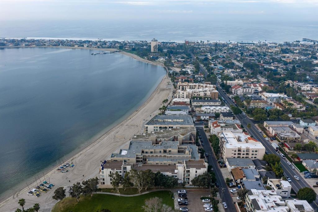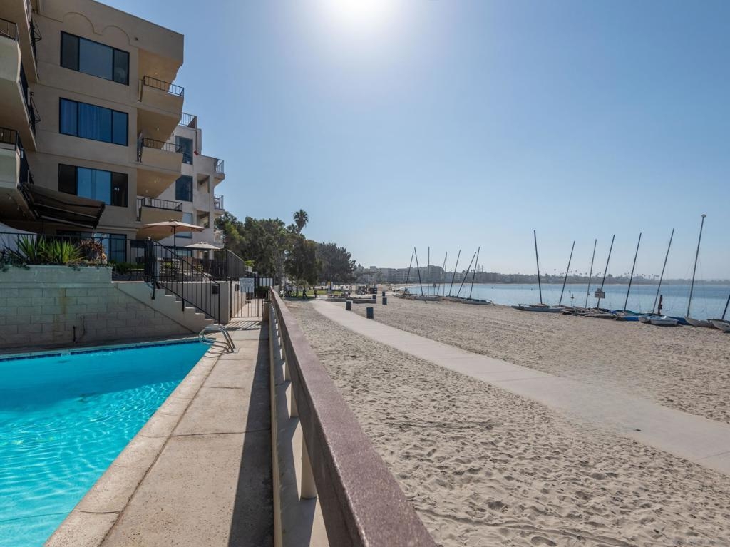 Fully renovated and thoughtfully updated, this home offers modern coastal living just steps from the sand in the sought-after Bayfront Santa Susanna community of Pacific Beach. This stylish single-story 2-bedroom, 2-bath residence features a bright, open layout that flows seamlessly between the living, dining, and kitchen spaces. Contemporary finishes are showcased throughout, including an updated kitchen with stainless steel appliances, and direct access to a private balcony with corridor bay views, perfect for enjoying coastal breezes. Both bathrooms have been tastefully upgraded, and the generously sized bedrooms include a private primary suite with ample closet space. The well-maintained building is ideally located in the Sail Bay neighborhood at the north end of the Bayside Boardwalk, offering a true beachside lifestyle. Additional highlights include two underground parking spaces, a swimming pool, extra storage, and a community barbecue area. Just minutes to downtown Pacific Beach dining, shopping, and convenient freeway access. This turnkey home delivers refined comfort in an unbeatable location.