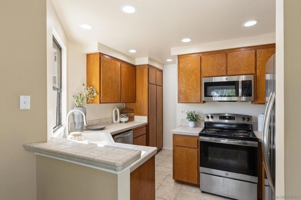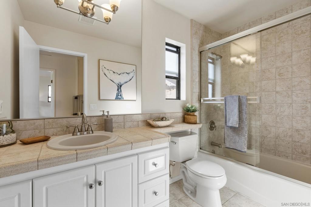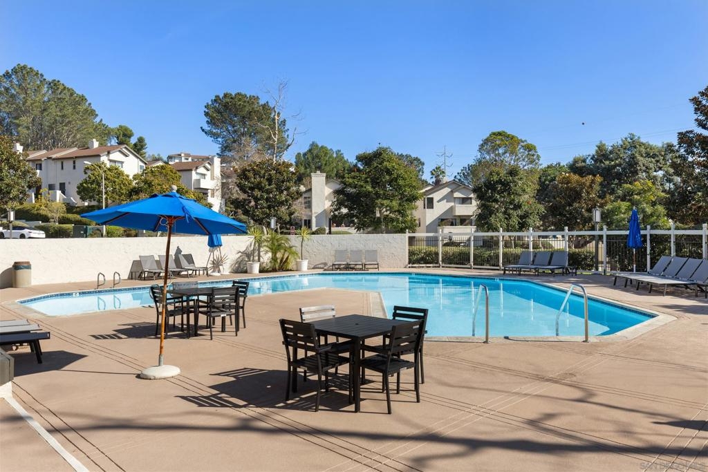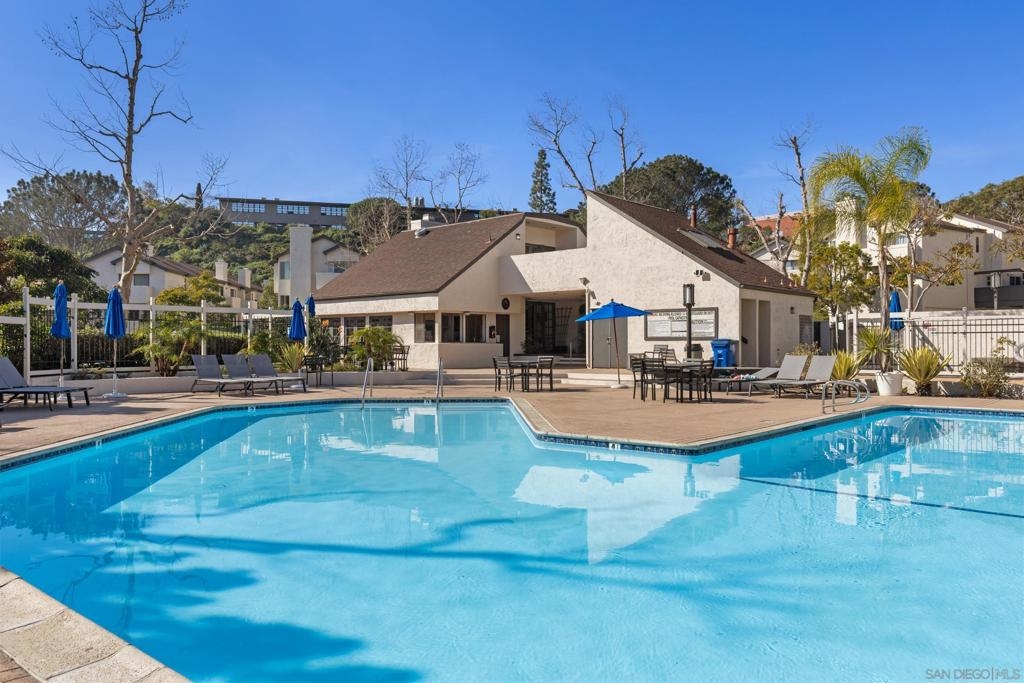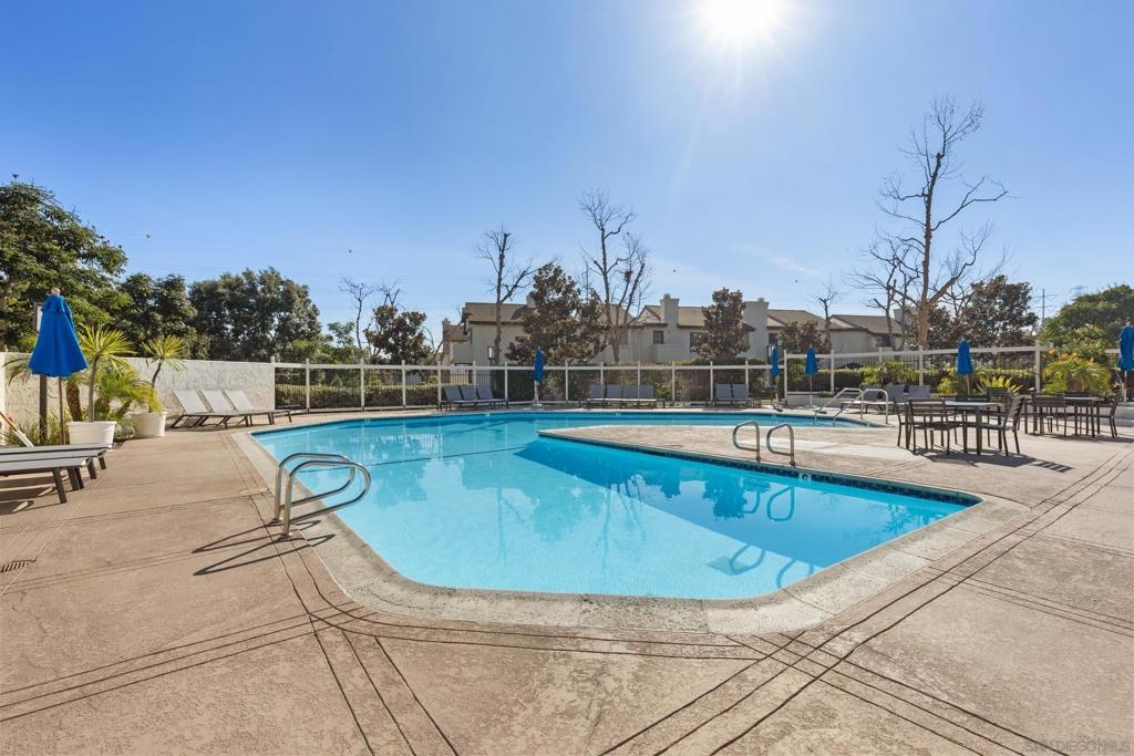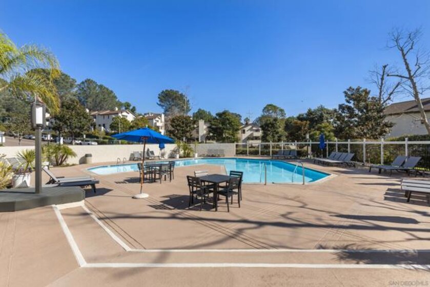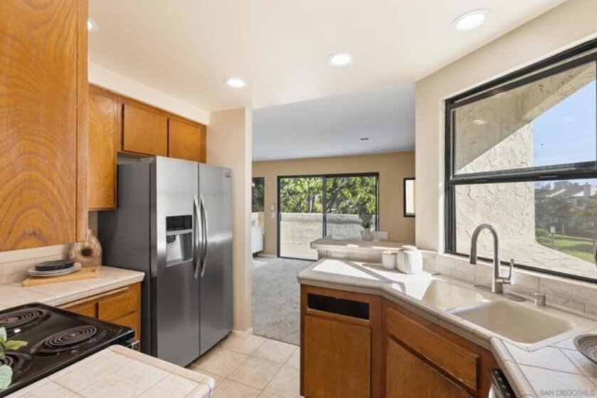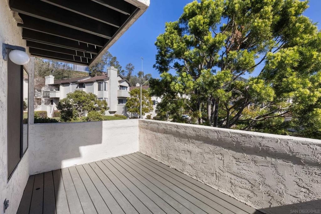 Beautiful end-unit condominium in the highly sought-after North Rim community, perched above Fashion Valley. This light and bright corner residence offers 1,098 square feet of comfortable living space with two bedrooms and one-and-a-half baths. Recent upgrades include all-new air conditioning and heating, brand-new carpet and paint, updated light fixtures, and new closet doors. A private deck with southeast exposure fills the home with natural light. Enjoy the convenience of an attached two-car garage featuring a workbench, plus a large storage and laundry area. The well-maintained community offers resort-style amenities including a pool and spa, a clubhouse in close proximity to the unit, tennis and pickle ball courts, and ample guest parking. Scenic area views and a peaceful setting complete the experience. Ideally located just one mile from the University of San Diego, with easy access to shopping, dining, freeways, airport and everything Fashion Valley has to offer. This is a must-see home in a prime location.