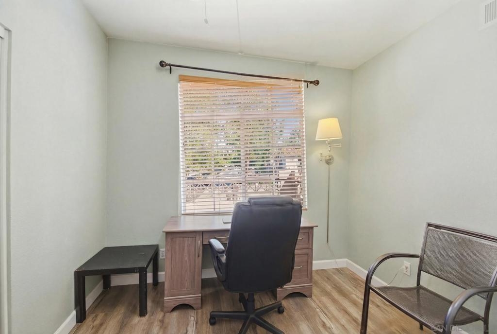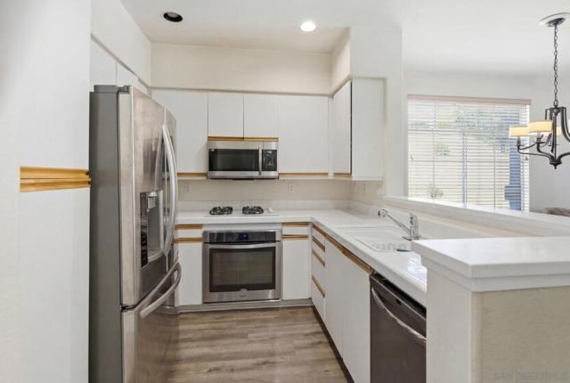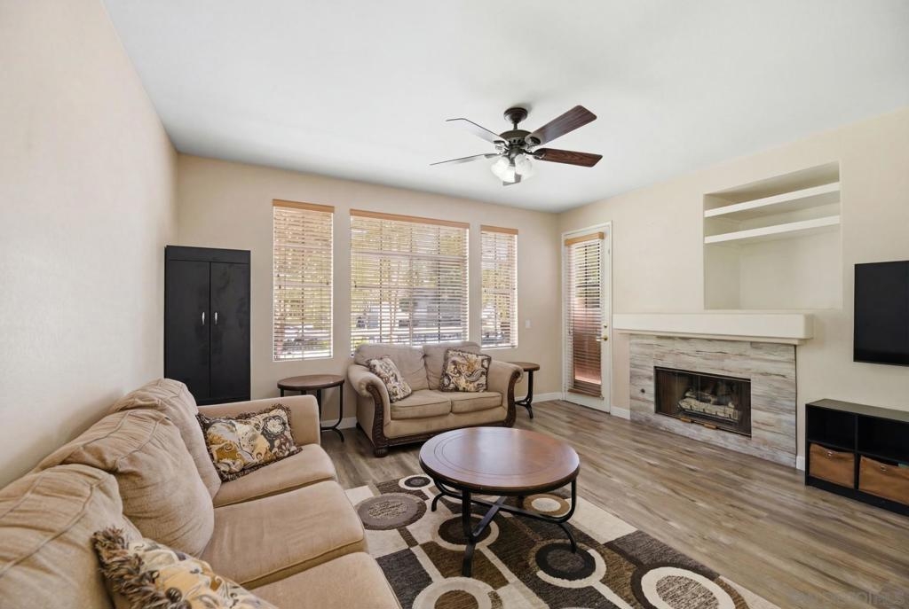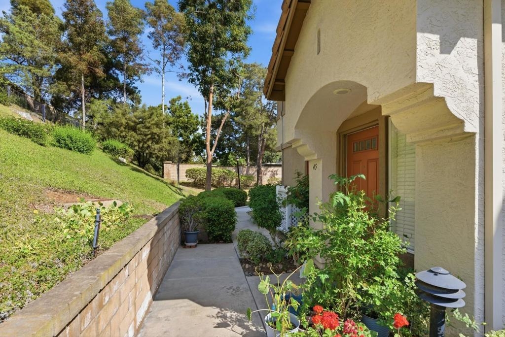 Highly desired Sabre Terrace community. End Unit with lots of sun light, Entry door is surrounded by lush landscaping total privacy & serenity. No neighbors in front of the unit or facing the unit. Nice size living space well designed, wood like flooring, living room with fireplace, recess lightings & balcony to enjoy the fresh air. The oversized primary bedroom has an ensuite bathroom & huge walk-in closet. Attached 1 car garage with plenty of storage, laundry in garage. Home close to all shops, easy freeway access & Award winning Poway