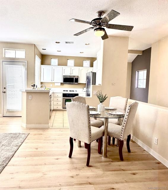 Seller Will Entertain Offer Between $699,900 and $719,900. Great Buy... Turnkey and Shows Like a Model. Don't Miss the Opportunity to Own This Beautiful Townhome in the Sought after San Tropico Community in Sabre Springs. Desirable 2 BR 2 BA Single Story Upstairs Corner Unit Offers Bright, Spacious Open Floor Plan With High Ceiling And Plenty Of Natural Lights. Designer Deco With Cozy Fireplace. A Private Entry With Own Staircase To The Unit. No One Above and Below is Your Own Attached Garage. Upgraded Features Include Brand New Luxury Vinyl Plank Staircase as well as the Entire Flooring in the Living Room and Bedrooms. Freshly Painted Kitchen Cabinets Showcasing a Modern Look with Stainless Steel Refrigerator & Appliances. Option to Have Interior Laundry or in the Garage. Large Outdoor Balcony to Relax and Enjoy. Ideally Located Near Shopping, Dining, Parks and Entertainment. Easy Access to Freeways. Highly Acclaimed Poway School District. The Well-Maintained Community Offers Fantastic Amenities, Including a Sparkling Pool And Spa. A GEM! Hurry To Make Your Best Offer!
