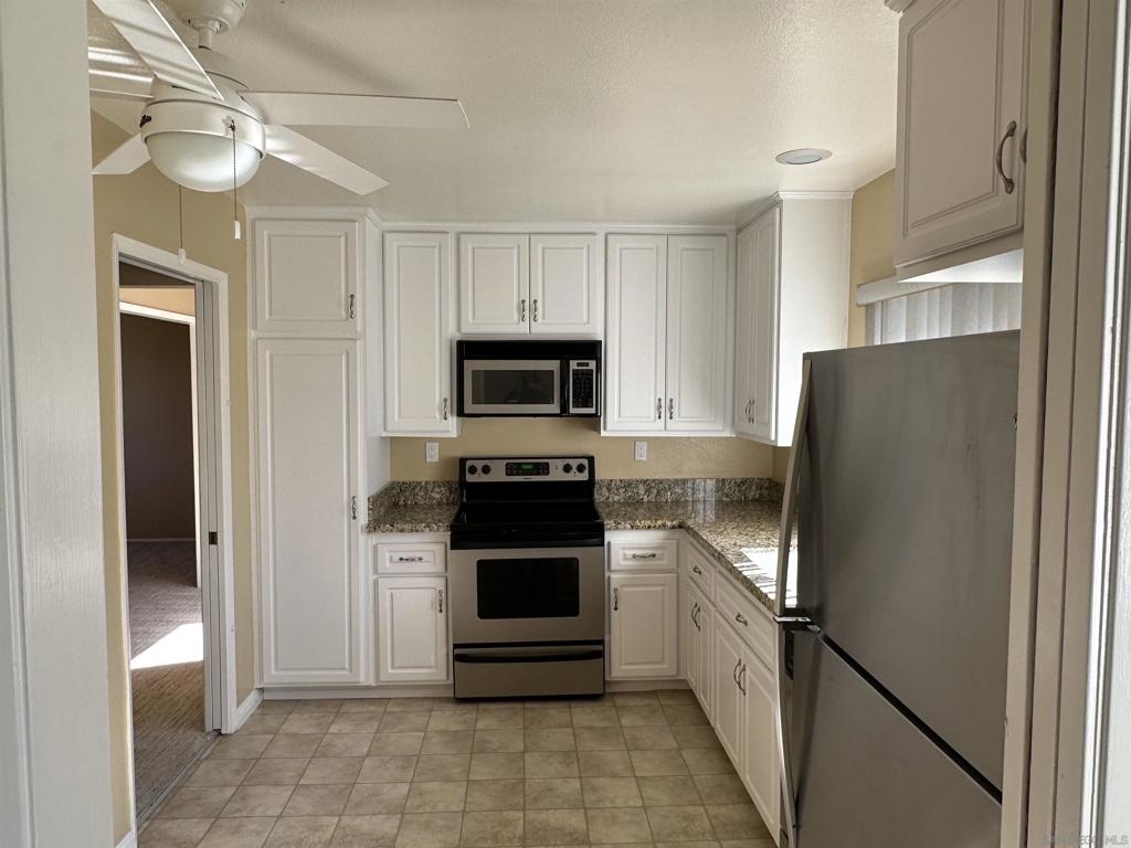 This beautiful and bright unit is perfect to enjoy sunsets beyond the spectacular mountain scenery, while overlooking the golf course. The layout of the unit boasts a wonderful cross breeze. The 2 bedroom, 2 full bath, plus a large Den/Study condo features refinished kitchen cabinets, granite countertops, vaulted ceilings, fresh paint and upgraded carpet and tile in the entryway and bathrooms. The assigned one car garage is located near the unit! Oaks North is an active 55 plus community offering three 9 hole executive golf courses, Bingo, Movie night, Game night, Dances, Lawn bowling, Yoga, fitness classes, art classes, Spanish group, Tennis, Travel club, Pickle Ball and so much more! The community boasts restaurants, shops and the Bernardo Winery.