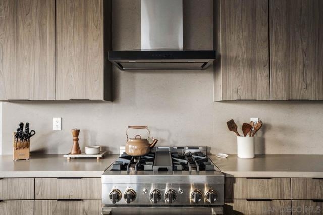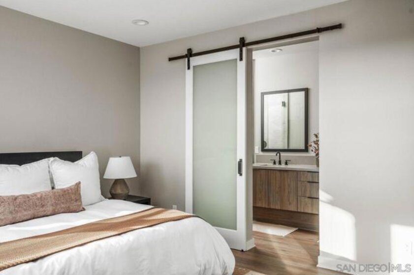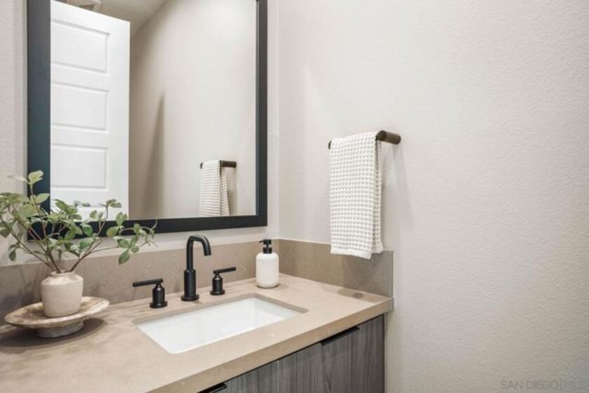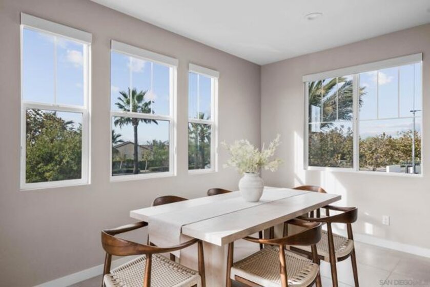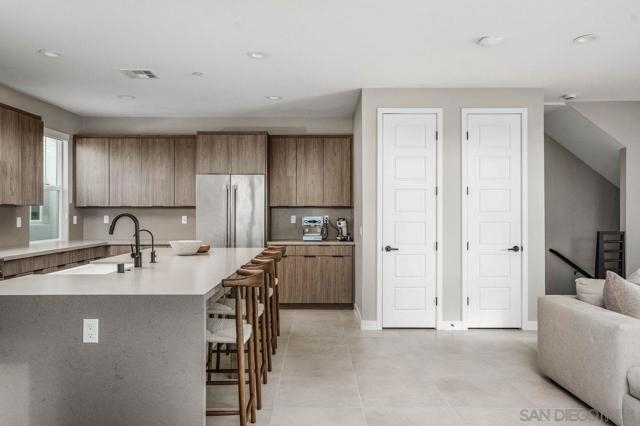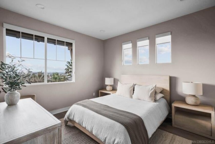 Welcome to 13016 Lumen Way, a Mediterranean-inspired retreat where warm earth tones, natural textures, and minimalist design create effortless style and inviting comfort. Located in the Lumen community of Pacific Highlands Ranch, this 4-bedroom, 3.5-bath, 2,118 sq.ft end-unit townhome sits in the most desirable location in the neighborhood—next to a semi-private parklet, with expansive views of Carmel Valley and peekaboo ocean views from the primary and second bedrooms. This light-filled home features over $100,000 in upgrades, including fully owned solar, high-end quartz countertops throughout, a striking waterfall island, and a full backsplash in the kitchen. Additional highlights include upgraded flooring throughout, luxury tile on all shower walls, soft-close custom cabinetry, enhanced recessed lighting in every room, custom window shades, and a finished garage with epoxy floors and ceiling-mounted storage racks. Fresh, modern interior paint adds the final touch. Top-of-the-line appliances including a premium washer and dryer, as well as a reverse osmosis system are included, making this home move-in ready. Lumen residents enjoy resort-style amenities with a pool, jacuzzi, and walkability to top-rated schools, shopping, dining, and trails. A rare chance to own a thoughtfully designed home that fuses Mediterranean inspiration with North County living.