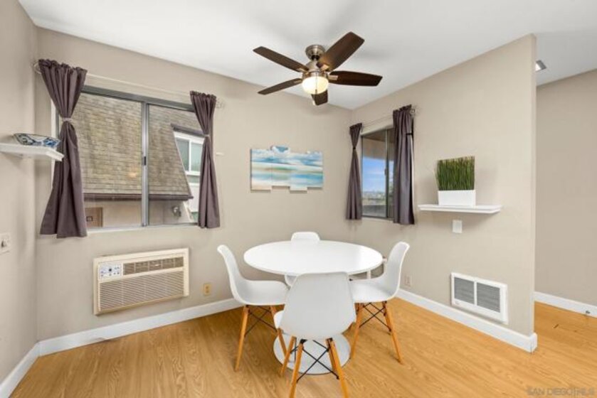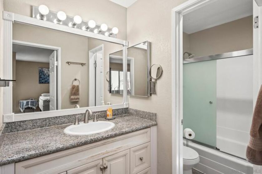Charming upper-level unit offers an open floor plan with a bright living area, dining space, and a private balcony ideal for morning coffee or evening relaxation. Enjoy an upgraded kitchen featuring modern cabinetry, granite countertops, stainless steel appliances and new microwave. The spacious primary bedroom includes generous closet space, while the updated bathroom offers contemporary fixtures and stylish finishes. Upgraded with dual-pane windows, and assigned parking for added convenience. Located in a resort-style community with lush landscaping, you’ll enjoy two sparkling pools, a spa, clubhouse, fitness center, laundry facilities, and peaceful walkways along the nearby river. Easy access to shopping, dining, the trolley, SDSU, USD, and major freeways—plus just minutes to beaches and downtown—this home delivers an unbeatable blend of comfort and lifestyle. Offered furnished!