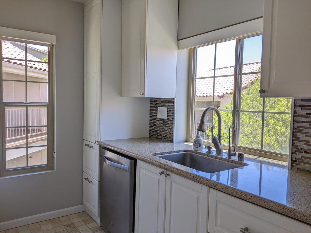 Remodeled and move-in ready condo located within the picturesque Stony Brook community of Sabre Springs. This upper corner unit is in a peaceful area of the complex away from street noise, features dual master bedrooms, and has lots of natural lighting throughout. Upgrades include new windows, wood laminate and travertine flooring, quartz kitchen countertops, white kitchen cabinets with brushed nickel hardware, mosaic glass tile kitchen backsplash, a stainless steel dishwasher, and full-size, front-loading washer and dryer. Complex amenities include an assigned covered parking space, pool, jacuzzi, multiple nearby parks, and neatly landscaped communal spaces. Conveniently located off the Hwy 56 and I-15 and just a stone's throw away from Carmel Mountain, Poway, and Rancho Penasquitos, your new home will be close to many shops, restaurants, and the new Apple campus opening soon in Rancho Bernardo. Equipment: Dryer, Washer Sewer: Sewer Connected Topography: LL