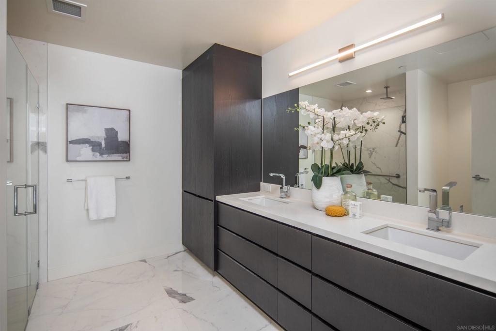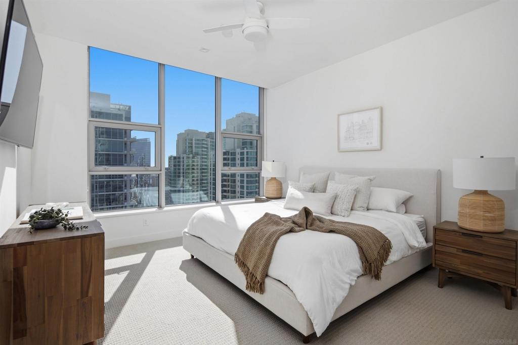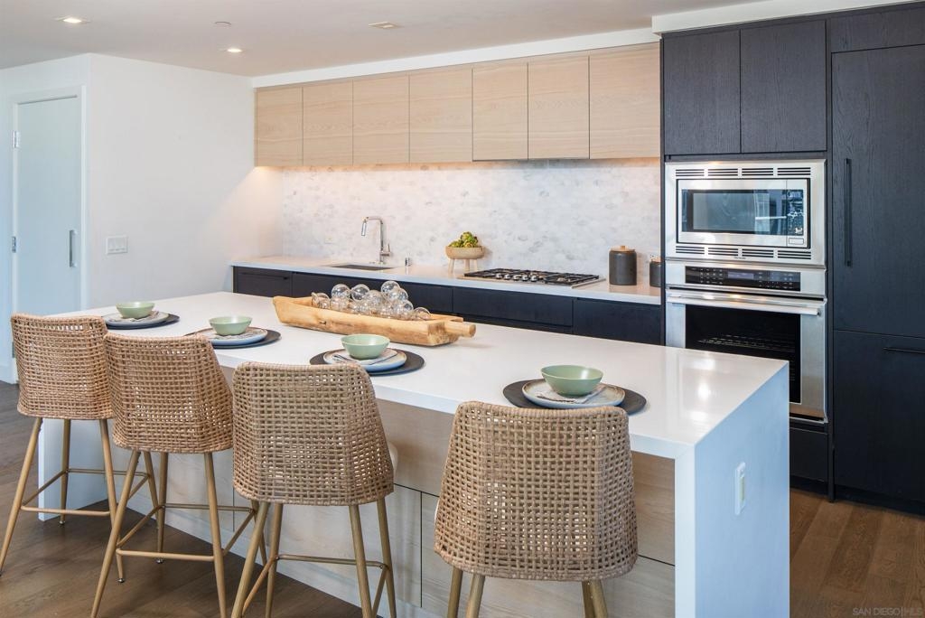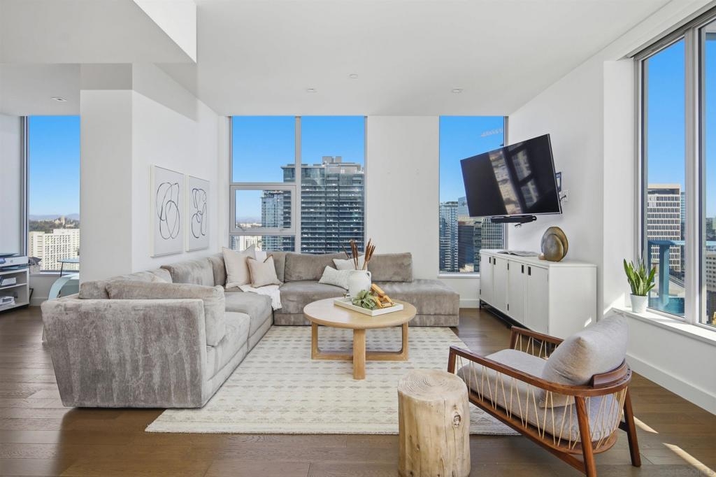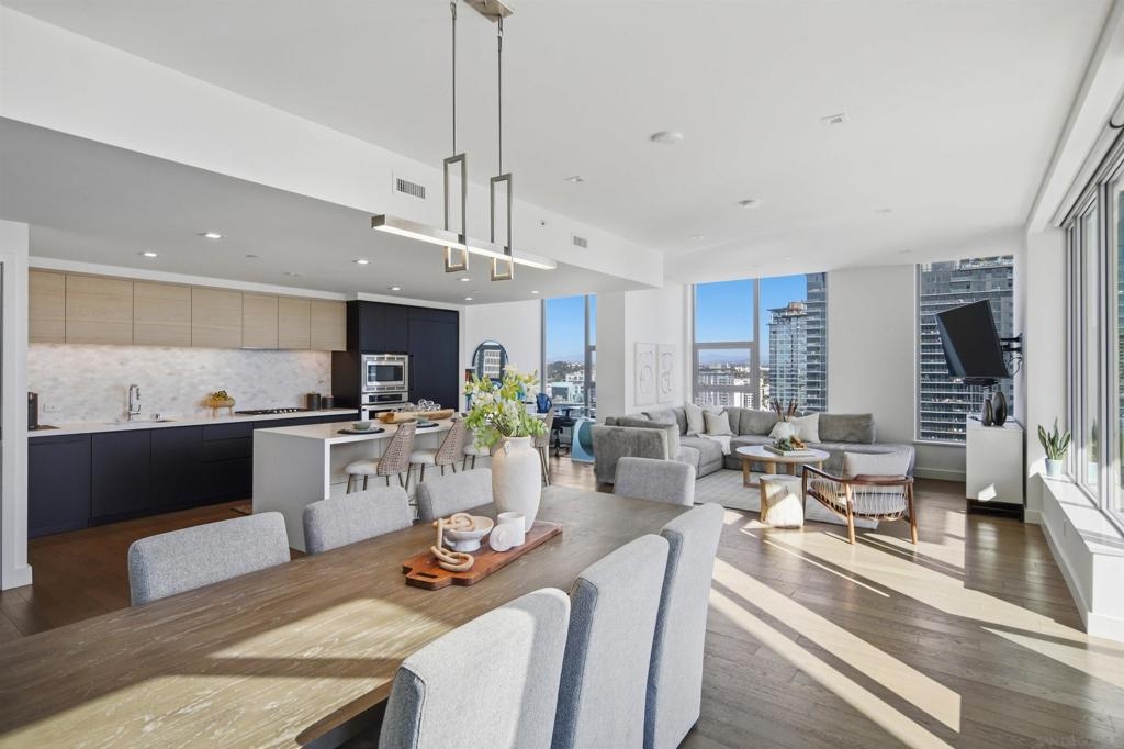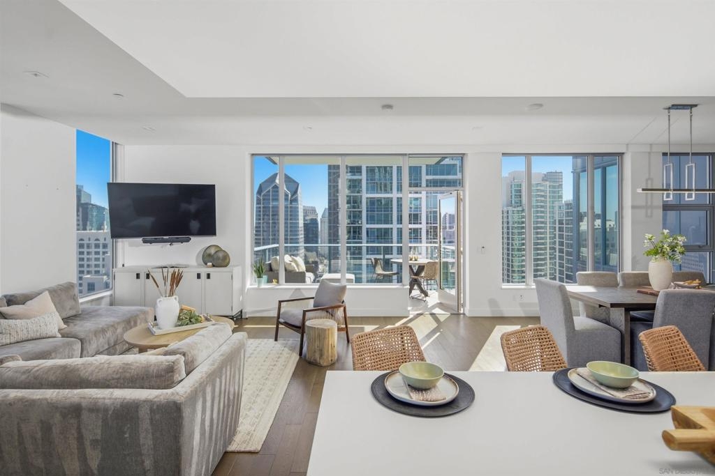 Savina #3005 is a rare 30th-floor, southeast-corner home with panoramic views from Balboa Park to the skyline, the Bay, and Point Loma. This particular home has higher than average ceiling heights at approximately 9'4", which make the home feel very open. The oversized kitchen and living area spans about 32 feet wide, wrapped in walls of windows with a den that adds flexible space for an office or lounge, and it even includes a true pantry—a hard-to-find feature Downtown. To top it off, you get three parking spaces, which is very rare for Downtown San Diego. Completed in 2019 by Bosa Development, Savina is a sleek 36-story high-rise with 285 residences and resort-style amenities including a pool terrace with cabanas, fitness center with yoga terrace, steam room and sauna, and a resident lounge with kitchen, plus a rooftop pet retreat and bike storage with a tune-up station. Designed by Amanat Architects and located at 1388 Kettner Blvd, San Diego, CA 92101, Savina sits at the crossroads of the Columbia District and Little Italy, just a short stroll to the waterfront and Embarcadero, Little Italy’s dining and shops, and convenient transit at Santa Fe Depot—with the Gaslamp Quarter and Seaport Village only minutes away.
