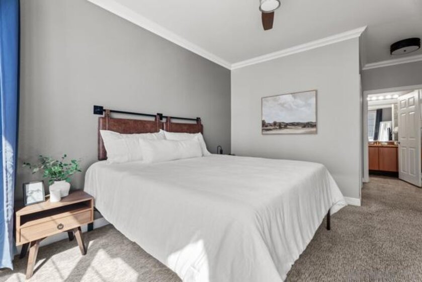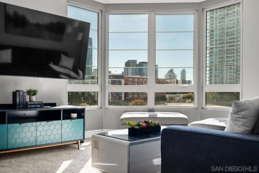 GREAT OPPORTUNITY to own the ** lowest priced 3 bedroom in 92101/92103/92104/92116 ** Welcome to Union Square, where urban convenience meets contemporary comfort. This 5th-floor corner condo is flooded with natural light through expansive windows and features soaring 9-foot ceilings that create an airy, open feel. A true rarity downtown, this is a full **3-bedroom residence—not a 2-plus-den/loft—**with generously sized rooms, an open-concept layout, and ample storage throughout. The primary suite offers a spa-like ensuite bath and a large walk-in closet with built-ins. Both bathrooms feature shower/tub combos, granite vanities, and updated modern lighting. Additional highlights include central AC and heating, two oversized parking spaces with a storage cage above, and a seamless flow between the living, dining, and kitchen spaces—perfect for everyday living or entertaining. Step outside your door and enjoy all that Downtown San Diego has to offer. You’re just steps from San Diego City College, a short walk to Petco Park, and positioned near the highly anticipated East Village Green (Phase 1 opening in 2025). Union Square residents enjoy resort-style amenities, including a fully equipped fitness center with sauna and jacuzzi, BBQ areas, a community lounge and party room, EV charging stations, and a year-round calendar of social events hosted by an active community committee. Onsite management ensures peace of mind, while the vibrant East Village location keeps the best of downtown dining, culture, and entertainment within easy reach.