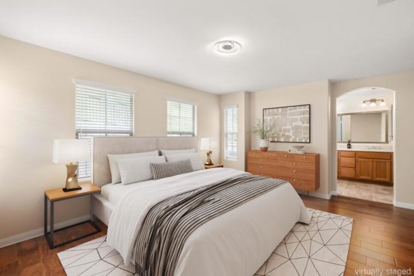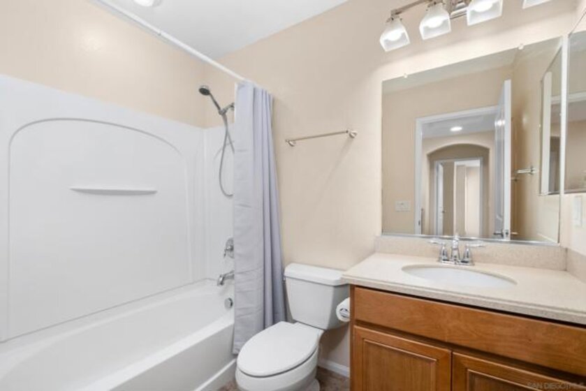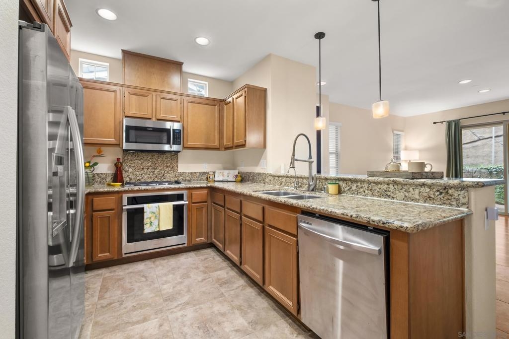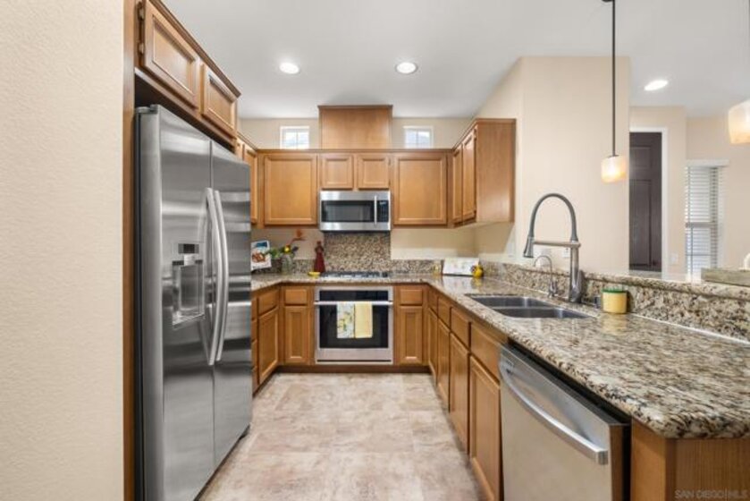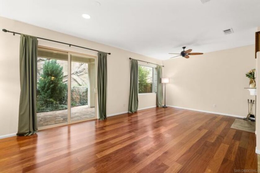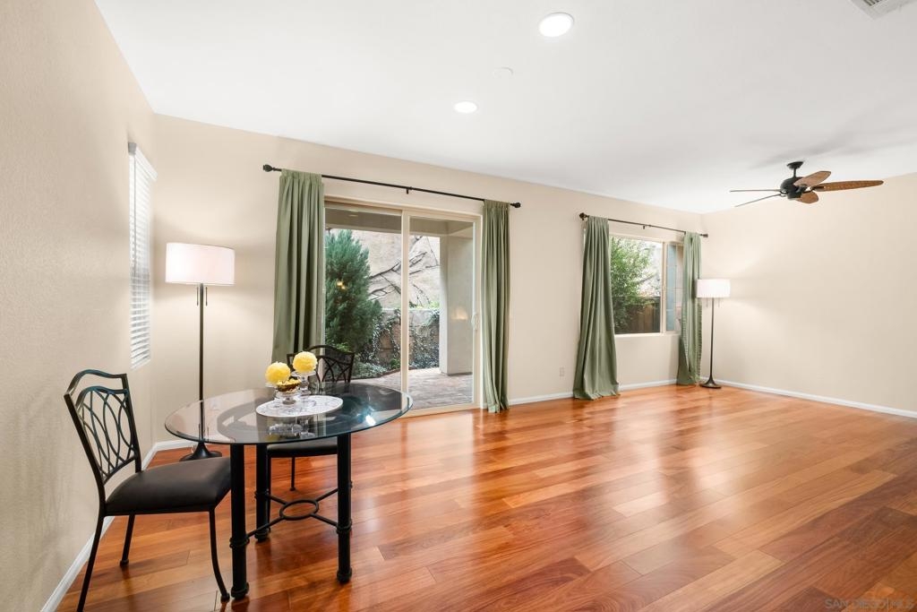 Welcome to this elegant and inviting two-story townhome in the highly sought-after Highland Ranch community of Carmel Mountain Ranch, where comfort meets timeless style. This beautifully upgraded home offers 3 bedrooms, 2.5 bathrooms, and an attached two-car garage, providing generous space and effortless functionality for modern living. Rich Santos Mahogany hardwood floors on the main level and Acacia hardwood flooring on the stairs and second floor create a warm, sophisticated atmosphere throughout. The living room features a cozy fireplace, serving as a welcoming focal point for intimate evenings or gatherings. An open layout seamlessly connects the living, dining, and kitchen areas, offering both elegance and everyday ease. Thoughtful upgrades include a custom walk-in closet with pull-out shelving and drawers, newer ceiling light fixtures in all bedrooms, Samsung appliances, a water softener system, and a newer garage door opener. Enjoy a beautifully designed outdoor retreat with professional landscaping, decorative stone and gravel ground cover, lush plantings, and an irrigation system—perfect for relaxing and low-maintenance living. Ideally located within walking distance to Costco, Trader Joe’s, Sprouts, dining, parks, and Highland Ranch Elementary School. Community amenities include a pool, spa, BBQ area, and playground. Located within the Poway Unified School District with easy access to I-15, I-56, and proximity to Del Mar beaches. Carmel Mountain Ranch offers comfort, convenience, and community. Welcome Home.
