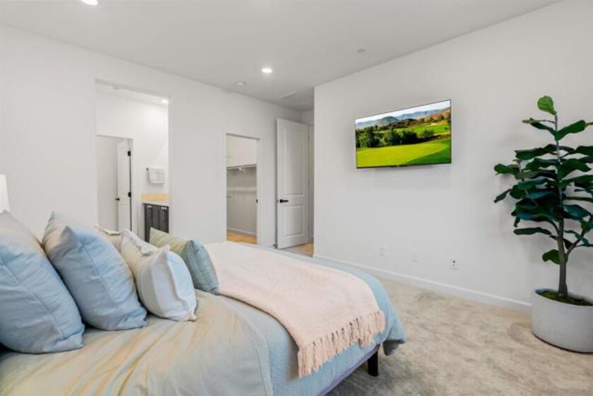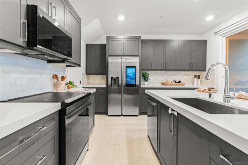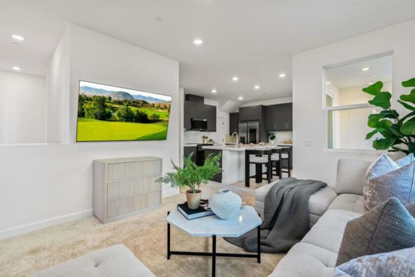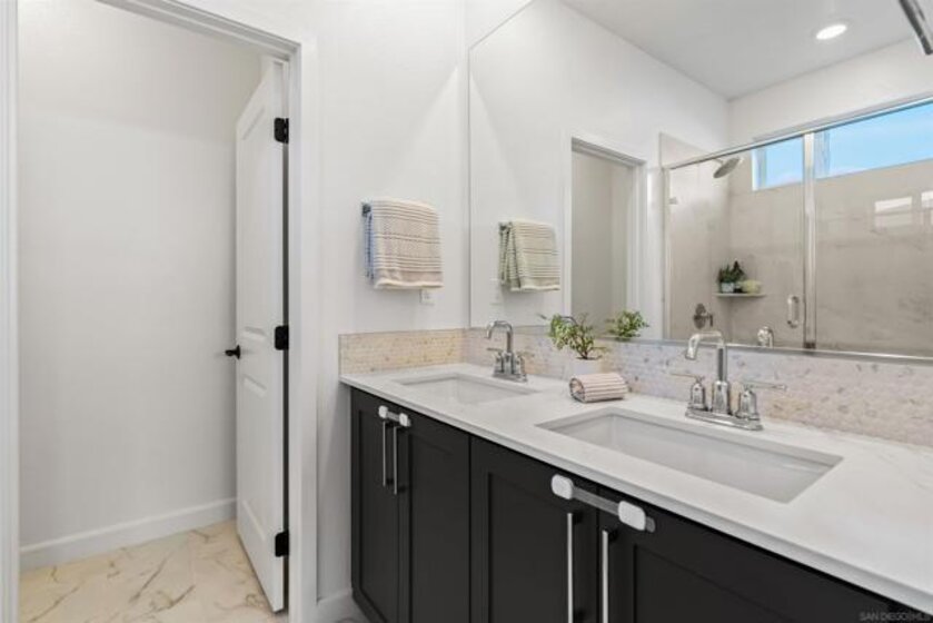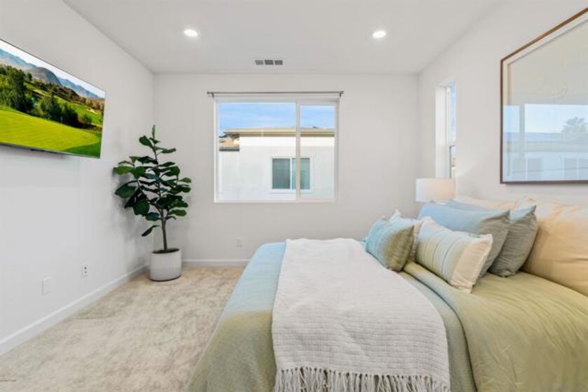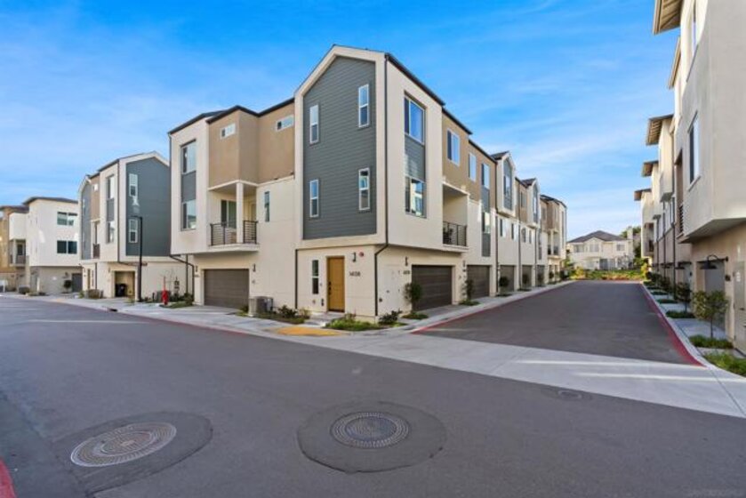Welcome to 14138 Jonah Way, a rare corner-unit townhome in the sold-out Lavendar Residence 2 at The Trails in Carmel Mountain Ranch. This 2-bedroom, 2.5-bath home offers 1,209 sq ft of modern, energy-efficient living. Features include fully paid solar, a ChargePoint EV car charger, two-car side-by-side garage, and a private patio. The open main level is bright and functional with smart home features and quality finishes throughout. Upstairs, both bedrooms feature en-suite bathrooms, providing privacy and flexibility. Residents of The Trails enjoy resort-style amenities including a swimming pool, parks, playground, dog park, basketball court, pickleball courts, BBQ areas, and scenic walking trails. Ideally located near shopping, dining, major freeways, and within the Poway Unified School District, this home offers a rare opportunity to own a sold-out model in a highly desirable Carmel Mountain Ranch community.