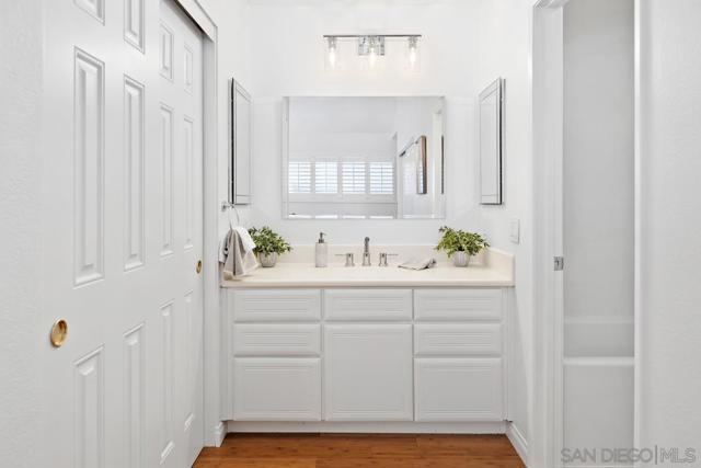 FASHION HILLS! Beautifully upgraded and in immaculate condition! This stunning 3-bedroom, 2-bath townhome features an open, spacious floor plan with high ceilings and a cozy fireplace in the living area. The bright kitchen has been refreshed with a new sink fixture, stainless steel appliances, and refinished cabinets. The main level includes two spacious bedrooms and a hall bath featuring an upgraded vanity, new Spearman fixtures, and a sleek glass shower enclosure. The private primary suite is situated on the top floor and offers vaulted ceilings, a cedar-lined walk-in closet, and a remodeled bath with a new vanity, mirrors, and a new tub/shower surround. Enjoy outdoor living on both the front balcony and rear patio—each featuring new Trex decking and a new patio fence. The attached 2-car garage is spotless with finished epoxy flooring and built-in storage cabinets. Additional upgrades include new Anderson windows and sliding doors, plantation shutters, bamboo flooring, new exterior light fixtures, upgraded outlets throughout, a new thermostat, and a Ring alarm system with cameras. All closet doors have been upgraded and customized by California Closets. The community offers a pool, spa, BBQ area, and tennis courts—perfect for enjoying San Diego’s sunshine! Centrally located near downtown, beaches, Balboa Park, SDSU, and USD, with restaurants and shopping just minutes away—Fashion Valley is right down the hill!