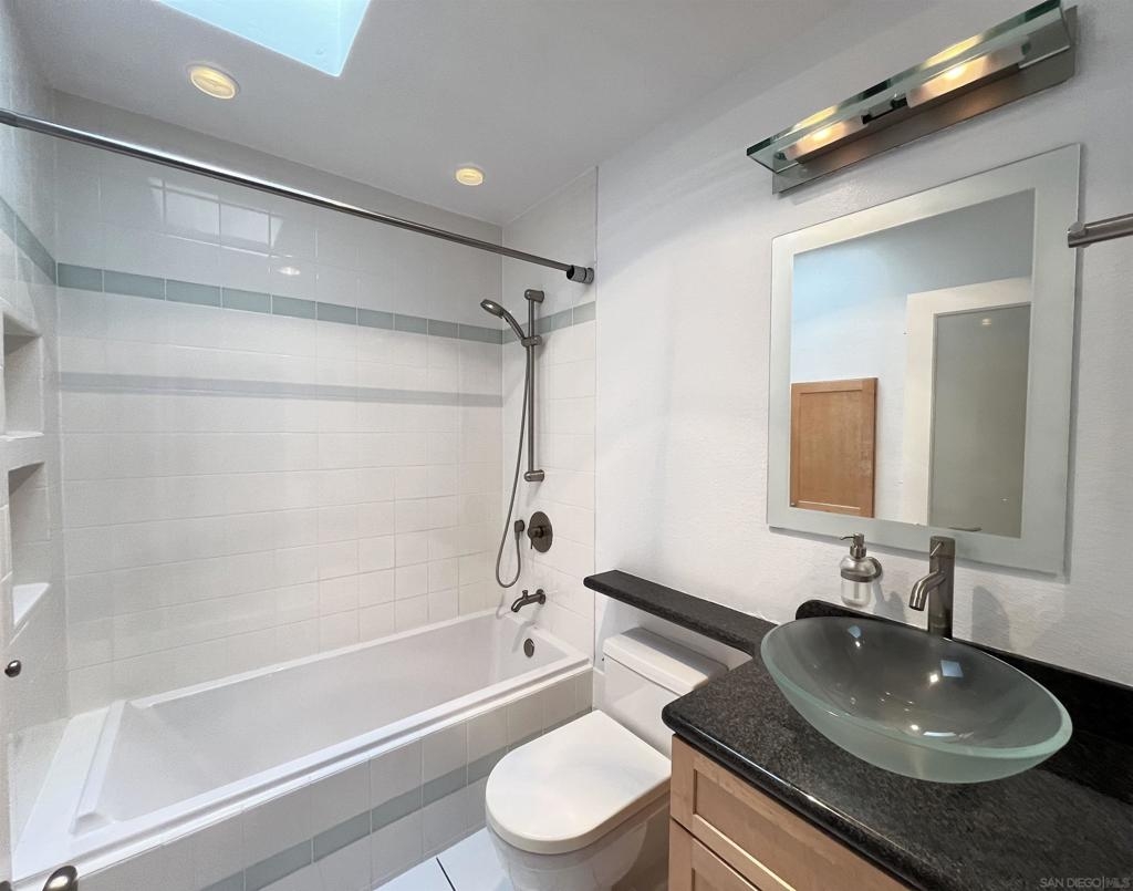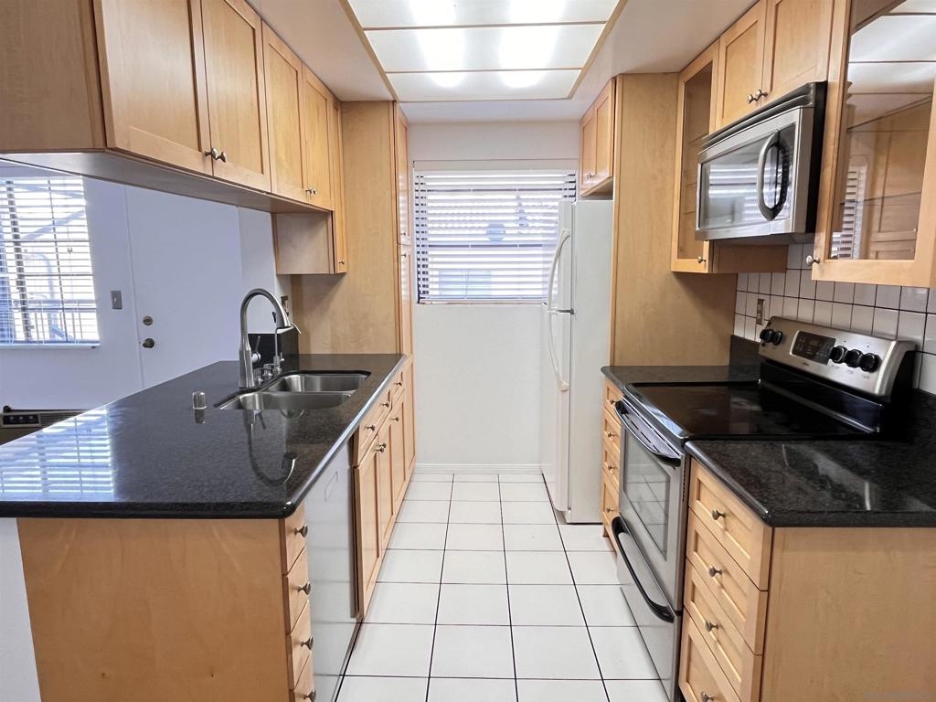 Bright 2nd story two-bedroom home centrally located in Hillcrest on quiet street close to Trader Joe's, Farmer's Market, and your favorite restaurants. Cozy up to the wood burning fireplace in your living room with vaulted ceilings. Entertain guests from your open plan kitchen with granite counters. Nurture potted plants in your kitchen's sunny garden window. Enjoy natural sunlight from the skylight while relaxing in your deep soaking tub. Convenience of full size in-home washer/dryer and private garage with powered door opener plus tandem parking space. Only 8 residences at this charming building.