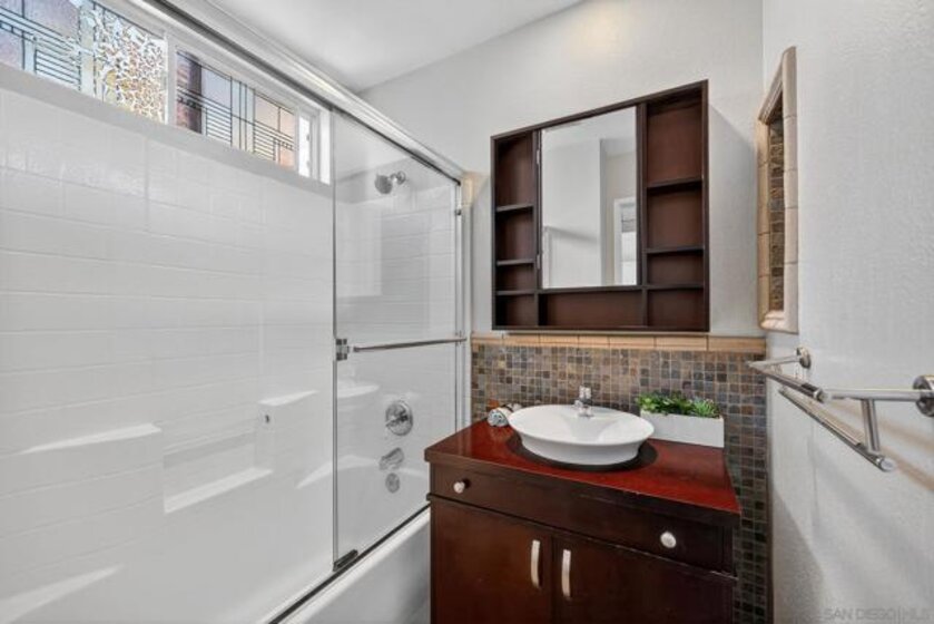 Welcome to this beautifully maintained two-story townhome in a charming Spanish-style community in the heart of Hillcrest. This bright and spacious 2 bedroom, 2.5 bathroom home offers comfort, style, and walkable urban living. The open living area features a cozy fireplace and abundant natural light, while the kitchen includes granite countertops, stainless steel appliances, and ample cabinetry. Upstairs, both bedrooms feature vaulted ceilings and private ensuite bathrooms, along with the convenience of an upstairs washer and dryer. Enjoy two private patios, including a spacious rear patio perfect for relaxing or entertaining. Additional highlights include an exterior storage closet, two parking spaces in a secured garage, and two dedicated storage boxes. Ideally located just blocks from Hillcrest’s popular dining, coffee shops, grocery stores, and entertainment, with easy access to Balboa Park and major freeways. A wonderful opportunity to own a stylish townhome in one of San Diego’s most vibrant and walkable neighborhoods. (Bedrooms have been virtually staged)