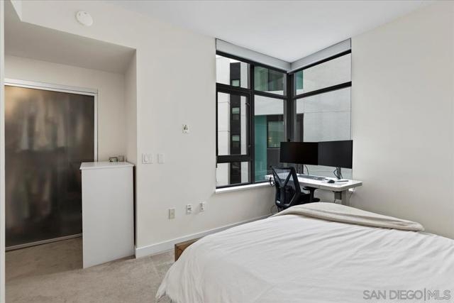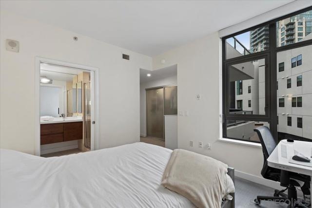 Situated on the coveted northwest corner of Aria in the tranquil Cortez Hill neighborhood, this refined residence offers a seamless blend of style and function. A thoughtfully designed open floor plan showcases an updated kitchen with sleek quartz countertops highlighted by a waterfall edge, premium stainless steel appliances, generous cabinetry, and a breakfast bar for four. The light-filled living room is framed by oversized windows and opening to a spacious entertaining balcony for effortless indoor-outdoor living. With a split layout that maximizes privacy, the two primary suites are situated on opposite sides of the home—one enjoying dramatic corner windows, a walk-in closet, and a contemporary ensuite bath with dual vanities and walk-in shower, while the second offers its own ensuite retreat ideal for guests or extended stays. Additional features include motorized living-room shades, full-size in-unit laundry, and two assigned garage parking spaces. Residents of Aria indulge in resort-style amenities, from a sparkling 70-foot lap pool, spa, and state-of-the-art fitness center to a stylish resident lounge and the peace of mind of on-site management and secured FOB entry. Perfectly positioned at the edge of downtown, Aria combines the serenity of Cortez Hill with the convenience of city living—minutes to Balboa Park, Little Italy, Petco Park, the Embarcadero, and the Gaslamp Quarter, with easy access to San Diego International Airport and major freeways. This is sophisticated urban living at its finest.