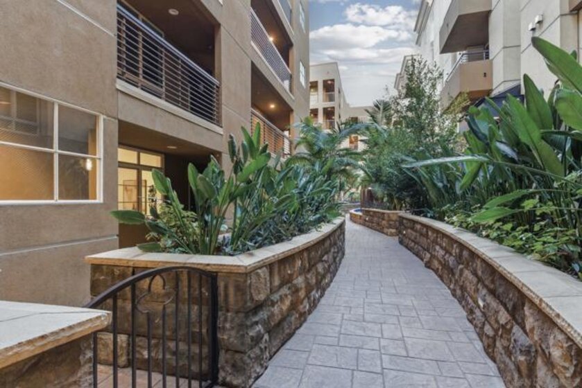 Welcome to this highly sought-after residence offering an impressive 1,100 sq ft of private outdoor space. Designed for seamless indoor–outdoor living, the home opens effortlessly to an expansive yard, perfect for entertaining or unwinding in a tranquil setting. The front entry welcomes you through a private courtyard framed by lush greenery and tranquil water features, creating a serene arrival experience. Elevators located just steps away provide direct access to your parking spaces in the upper garage, blending everyday convenience with refined urban living. Enjoy the rare comfort and privacy of a single-family-home feel in the heart of the city. With a Walk Score of over 90, Union Square is located across the street from San Diego City College with convenient access to major freeways: 163, 5, and 94. Adding to the neighborhood’s safety and peace of mind, the San Diego Police Department (SDPD) headquarters is also located directly across the street. Union Two blocks away a 4.1 acre East Village Green park is under construction and a wonderful addition to the neighborhood! The development will include a community center, children’s park, off-leash dog areas, cafés, plazas, multiple lawn areas, a performance pavilion and underground parking. Union Square Condominiums deliver exceptional value with below-average HOA fees. Amenities include a fitness center, pool, sauna, clubhouse with a pool table, and courtyards with BBQs. The HOA also covers key utilities such as water and trash, adding even more value for homeowners. An on-site property manager ensures smooth day-to-day operations, while multiple communal EV charging stations make powering your electric vehicle easy.