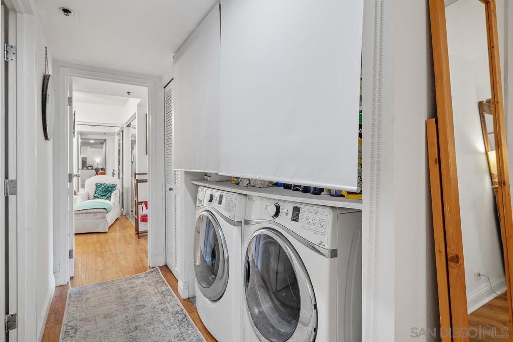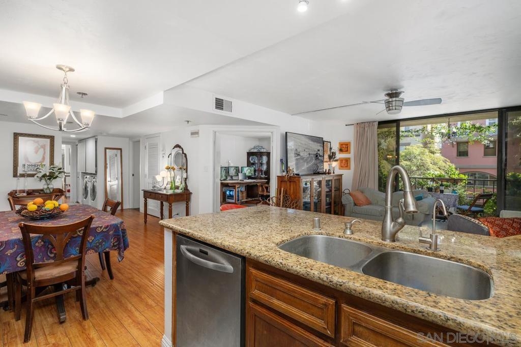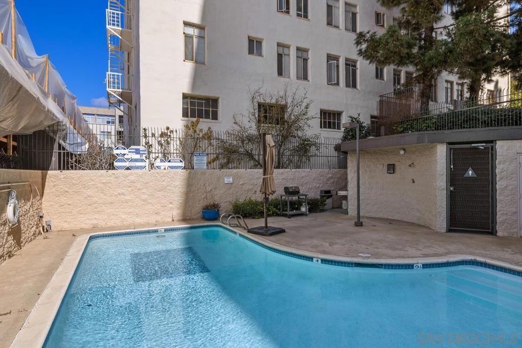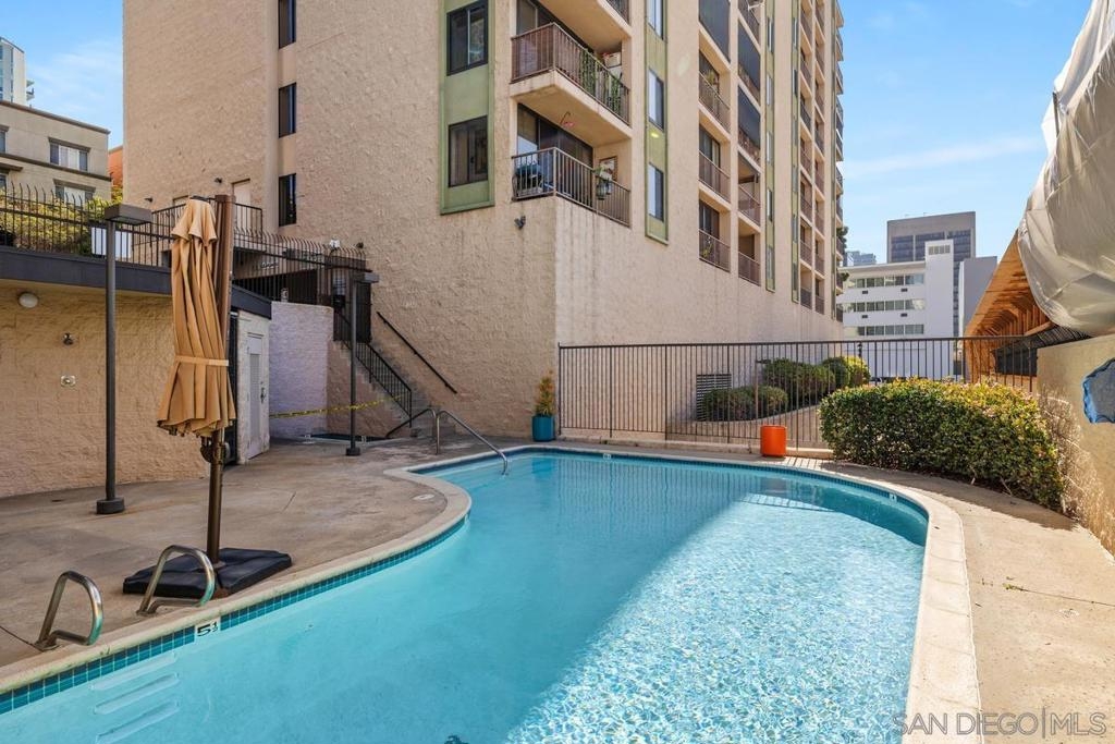Price adjustment to sell! Located on a quiet tree lined street, with beautiful mature Jacaranda trees. Unit is situated on the east side of the property, which is the opposite side of the new construction site. In addition, the unit does not share any walls with neighboring units. One need only make a personal visit to experience the full essence of this well appointed three bedroom 2 bath residence, all in a spacious 1,348 square feet of living space. The most spacious 12 foot by 7 foot entry foyer is just a hint of what you are about to encounter…a spacious open floor plan, engineered hardwood flooring, the perfect sized kitchen, all leading to the balcony with picturesque views that include the historic El Cortez Hotel. Not to be overlooked, of course the central heating and air-conditioning system to keep you comfortable year-round. And certainly a rarity these days is the secure two vehicle parking accommodations, no shared walls, as well as access to a storage room, in addition to two storage cabinets in the garage. You will have guest quarters for your visitors, a most inviting pool and spa, and lest we forget, the excellent location convenient to what San Diego is famous for, Balboa Park, the Gas Lamp, the abundance of restaurants, coffee houses, shops, and the most delectable of dessert venues. And when you want a change of scenery, the location is close to freeways and transportation. This property is the one that you don’t want to miss out on. There are new elevators and a new roof, and the building is built with cement and steel, offering higher quality construction and a more quiet living experience.
