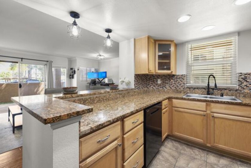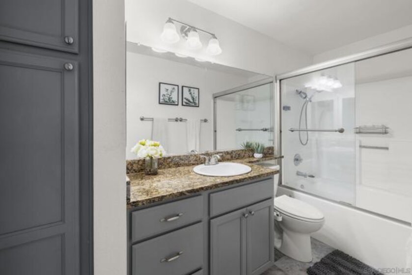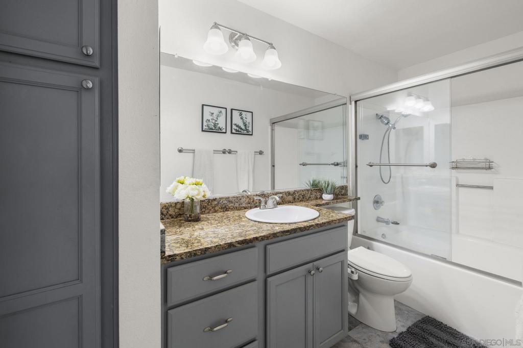 Desirable ground-floor unit in Villa Taviana, Rancho Bernardo. This cool and quiet condo offers engineered wood flooring in the living room, dining area, and hallway, tile flooring in the kitchen and bath, and carpet in the bedroom with a spacious walk-in closet. Kitchen features granite countertops, and the home includes a newer AC unit, large private balcony with extra storage, and in-unit stacked washer and dryer. Peaceful location with no road noise. Includes 1 carport parking space and low HOA. Villa Taviana offers resort-style amenities including walking distance to pools, spa, tennis court, fitness center, clubhouse, and tot lot. Close to parks, schools, restaurants, shops, and just minutes to the freeway.