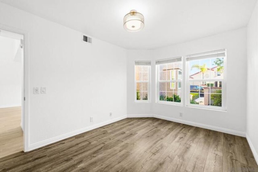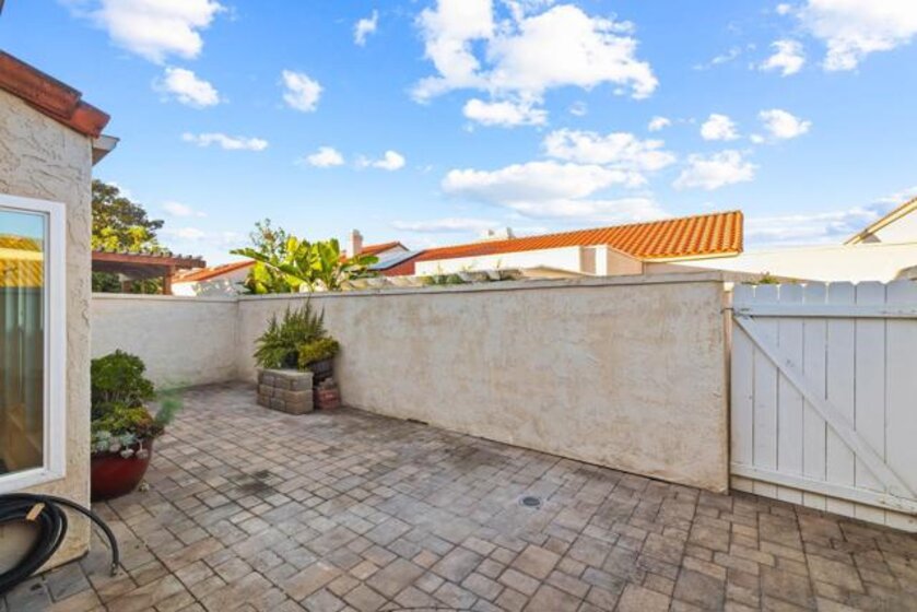 Beautiful Single-Story Villa located in the desirable Bernardo Heights area of Rancho Bernardo. This 2-bedroom, 2-bath home offers an open and airy floor plan, vaulted ceilings, and abundant natural light streaming from the skylights. The spacious living room features a cozy fireplace, 9-foot+ ceiling, and French doors that open to your private patio—perfect for relaxing or entertaining. Updated kitchen includes generous counter space, a charming bay-window breakfast nook, and stainless-steel appliances. Enjoy the convenience of an inside laundry room, ceiling fans, air conditioning, instant hot water, and direct access to the attached garage. The primary suite boasts vaulted ceilings, a skylight, and a beautifully updated en-suite bath. Residents of the Las Brisas community enjoy access to Bernardo Heights Community Center with tennis courts, pool, spa, fitness center, and more. Nearby Lucido Park offers tennis courts and a playground for outdoor fun. This turn-key home blends comfort, convenience, and resort-style living in one of Rancho Bernardo’s most sought-after neighborhoods.
