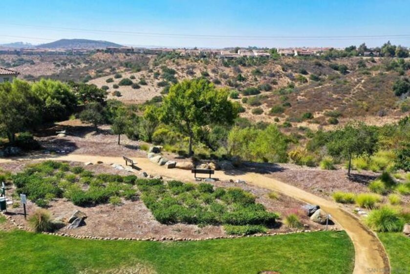 Welcome to Garretson at Del Sur, where resort-style living meets modern comfort! This corner-unit home offers 4 bedrooms, 3 bathrooms, and an attached two-car garage. The thoughtfully designed ADA-certified floor plan includes a main-level bedroom and full bath, ideal for guests or multigenerational living. The open-concept living area is filled with natural light and features recessed lighting, durable flooring, and a beautifully appointed kitchen with crisp white cabinetry, stainless steel appliances, granite countertops, and an island with breakfast bar seating. Upstairs, you’ll find the remaining bedrooms, including a spacious primary suite with a walk-in closet and luxurious en-suite bath complete with a soaking tub and walk-in shower. Del Sur is a community like no other, surrounded by over 1,000 acres of preserved open space with 18+ miles of trails, 14 parks, 11 heated pools, year-round community events, and a vibrant Town Center with shopping, dining, and services—including Target and Sprouts. Located within the top-rated Poway Unified School District, this home offers the perfect blend of convenience, comfort, and lifestyle in one of San Diego’s most sought-after neighborhoods.