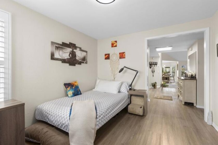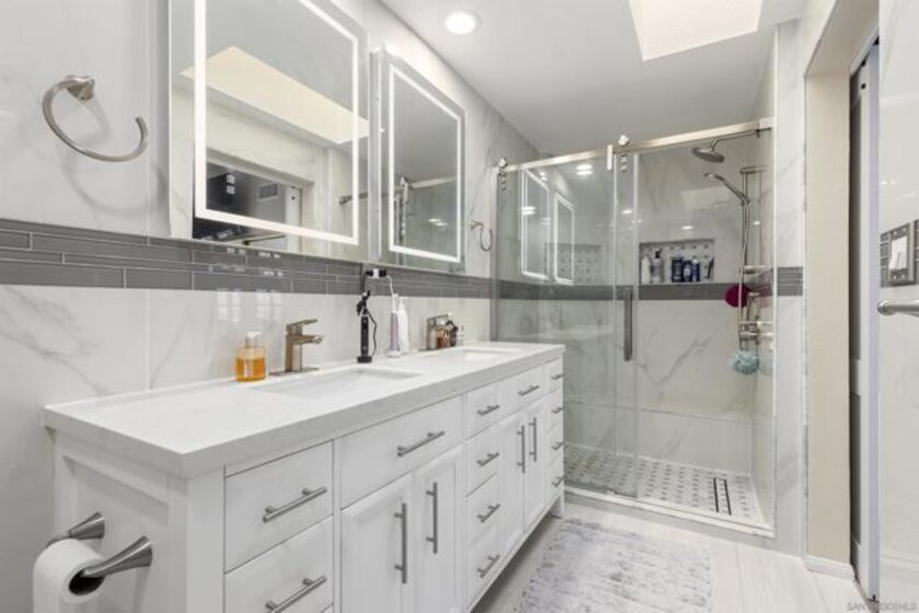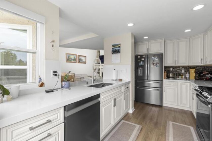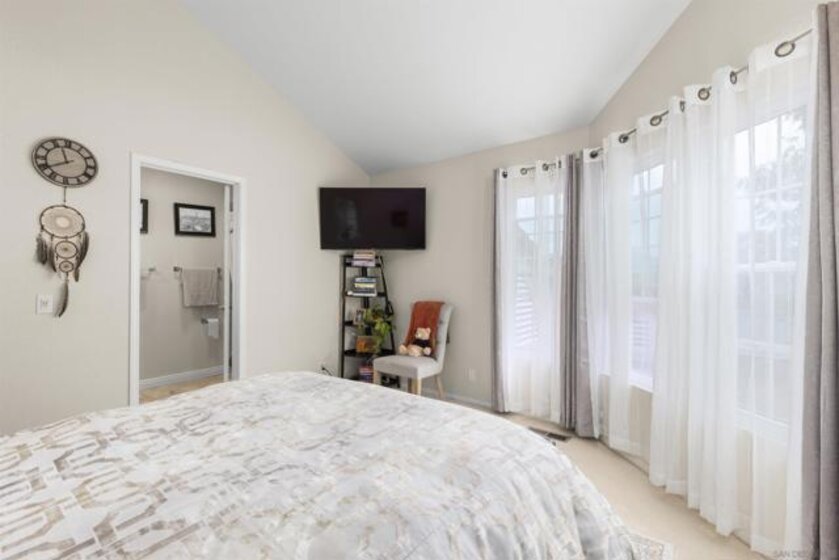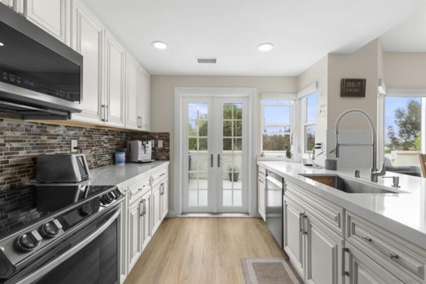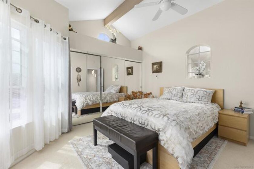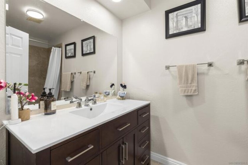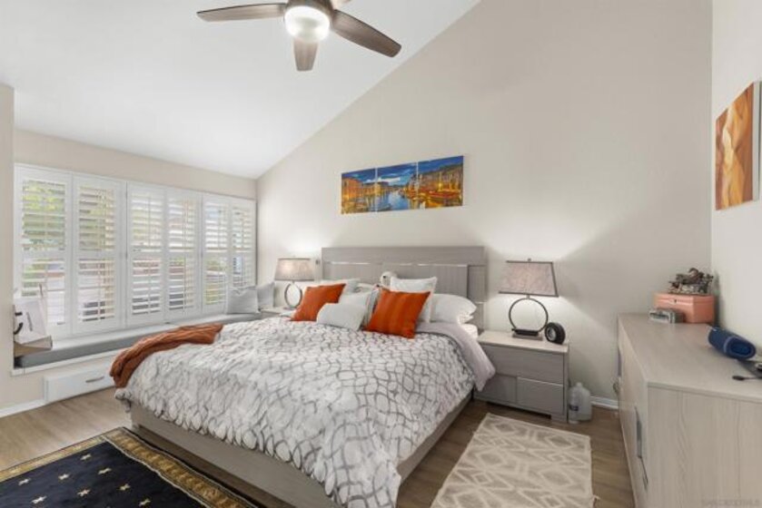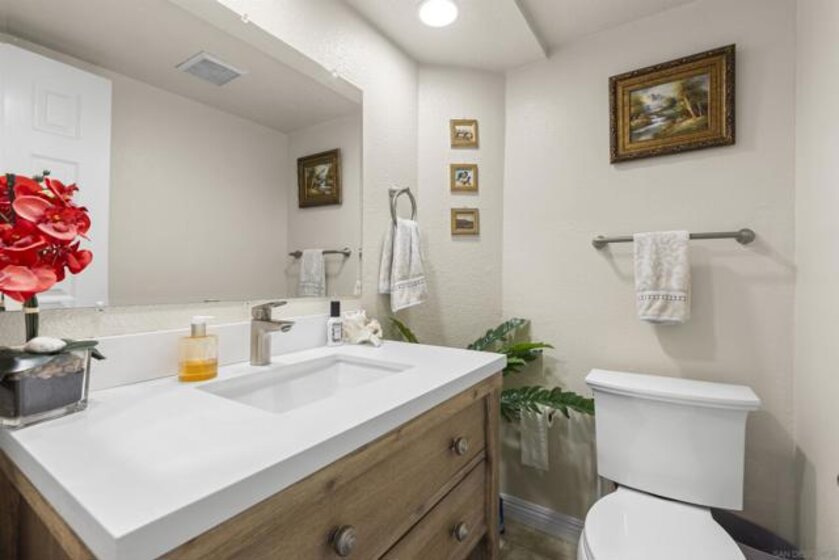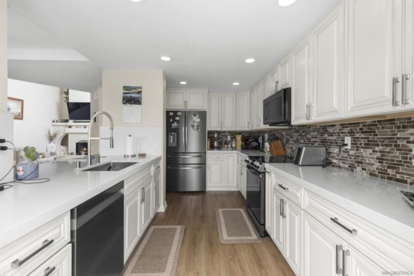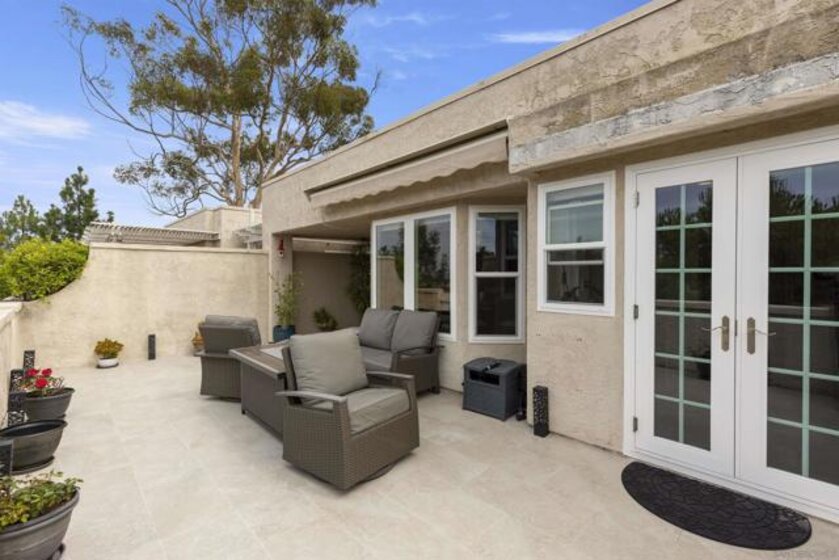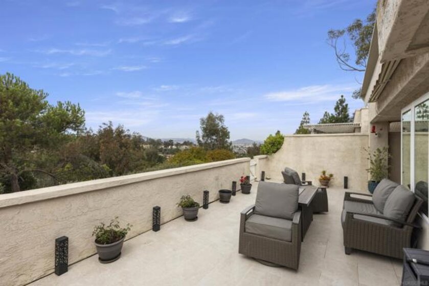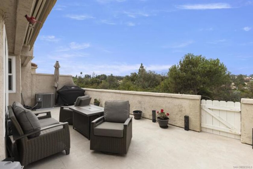 Welcome to Las Brisas, one of Rancho Bernardo's most desirable communities. This unique townhome-style condominium lives like a home with no other units above or below and a thoughtfully designed two-level floor plan. This home features three bedrooms- Primary suite on the first floor; second floor features a spacious third with an en-suite bathroom that lives like a second primary bedroom. There is an attached one-car garage with ample storage space. Second bedroom is currently set up as a flexible office/guest room. There is a private back yard patio with incredible views that are perfect for relaxing or entertaining. Recent seller Upgrades all within the past four years include full interior painting throughout, Modern Kitchen remodel with new cabinetry and top of the line Samsung Appliances. Simonton windows with lifetime warranty, complete primary bathroom remodel. Lenox high efficiency furnace and A/C, Sunsetter 12' retractable patio awning for year around comfort. New exterior floor tiles at th front entry and back patio. Las Brisas offers residents resort-style living with pools, hot tubs, and tennis courts, all set in a beautifully maintained community. Just a short walk away, Lucido Park provides playgrounds, open fields, and a recreation space. Living in Rancho Bernardo means enjoying one of San Diego's most established and sought after master-planned communities. Residents benefit from Top Rated schools in Poway School District. Easy access to shopping, dining, and services at Rancho Bernardo Plaza and nearby Carmel Mountain Ranch centers. Golfer's paradise with the Rancho Bernardo Inn Golf Course and Oaks North Golf Course just minutes away. Outdoor recreation at Lake Hodges and the scenic Bernardo Winery, a historical local landmark with wine tasting, farmer's markets, and live music. Convenient freeway access (1-15) for easy commutes north and south. This home offers a rare combination of thoughtful upgrades, private outdoor living, and access to all that Rancho Bernardo has to offer.