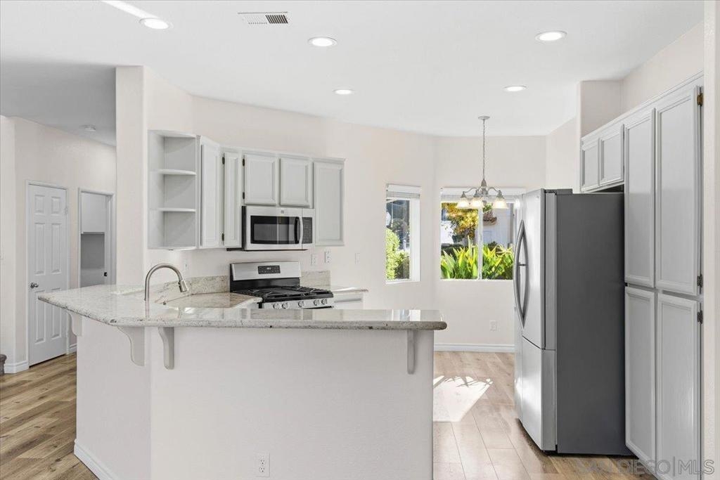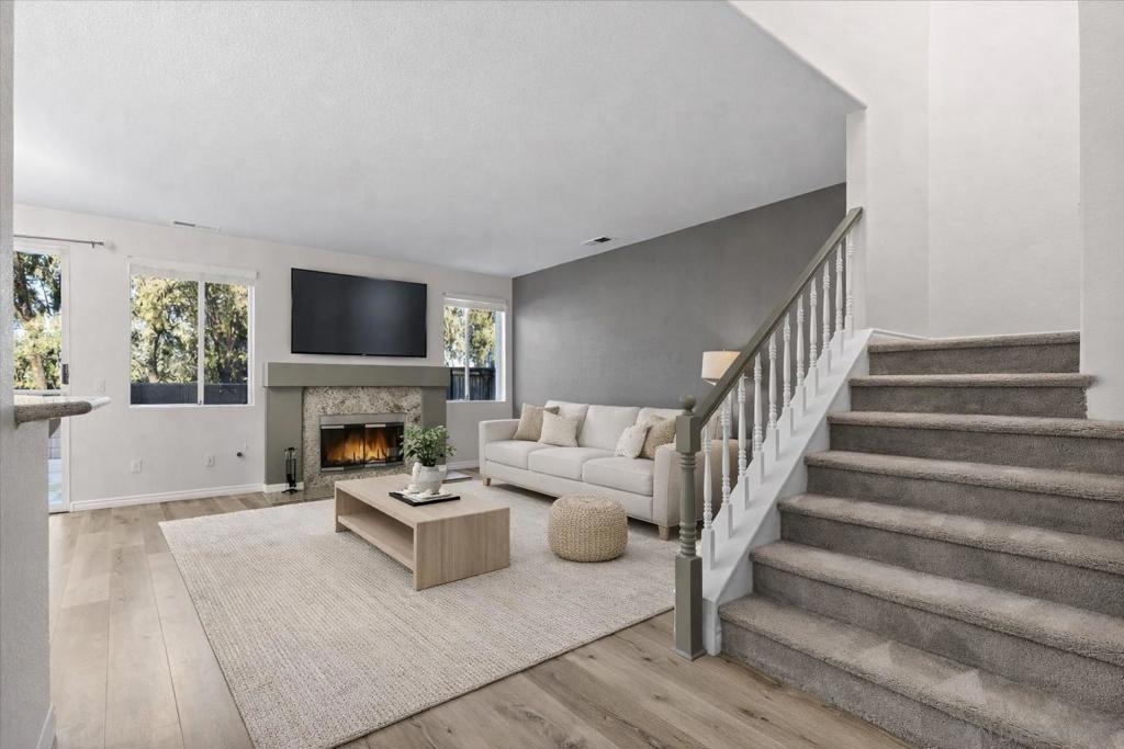 Welcome to this beautifully renovated 3-bedroom, 2.5-bath townhome located in a gated community within the highly regarded Poway Unified School District. The open floor plan is enhanced by luxury vinyl plank flooring throughout the main living areas. The updated kitchen features light granite countertops and newer stainless steel appliances, seamlessly opening to the family room for easy entertaining. Upstairs, the spacious primary suite offers high ceilings, a large closet, and dual-sink vanities. Washer & Dryer hookups in the garage, laundry room was converted into an office, with an upgraded electrical panel to a 220-amp which would be good if you wanted to add an EV Charger. Additional highlights include a rare oversized driveway and an attached two-car garage. Enjoy outdoor living with a charming front garden and a private, spacious rear patio. HOA dues include membership to the Bernardo Heights clubhouse with heated pools, spas, tennis, pickleball, basketball courts, a gym, and year-round community events. Ideally located near shopping and dining, less than 2 miles from top-rated schools, and offering convenient access to I-15 and SR-56. Homes rarely come available in this sought after neighborhood. Don’t miss the opportunity to elevate your lifestyle.