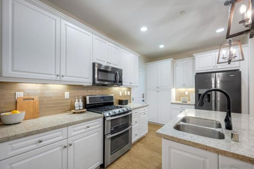 Beautifully maintained 3bd/2.5ba home in the Garretson community of Del Sur. Featuring owned SOLAR, fresh interior paint & updated powder room. Light & bright kitchen boasts a center island, double oven range, & plenty of space for both prep & entertaining. Upstairs has versatile loft area, laundry rm, 2 secondary bdrms that share a hall bath & a spacious primary suite w/ensuite bath. Additional highlights incl a garage w/custom built-in storage & a charming front courtyard that opens to a peaceful, park-like walkway. Must-see! First time on the market! Seller has added nice features such as whole house water softener, plantations shutters throughout, tankless water heater and newer refrigerator. Located in the Award Winning Poway Unified School District. Del Sur is a vibrant San Diego master-planned community where the homes and parks were inspired by historic San Diego neighborhoods. Del Sur boasts 18 miles of shared trails, 11 solar heated pools within the community's 14 parks, and is close to shopping, restaurants, & professional services in Del Sur Town Center. This home is ideally located just blocks from top-rated PUSD schools.
