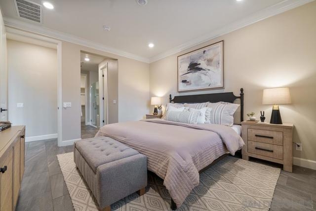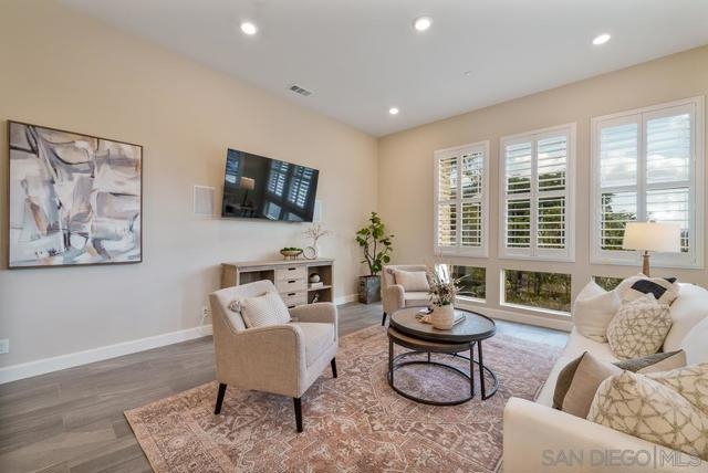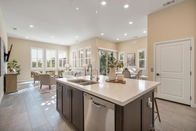 EXTERIOR DUAL MASTER Plan 3 Avante 55+ home with EXPANDED GARAGE and phenomenal location! Enjoy over 30K in pre-closing flooring upgrades in this 2018 build, including Celestial plank tile & Welbeck maple wood. Smoke shaker cabinetry with chrome pulls, quartz counters, soft-close drawers, accessible beige walls, wood shutters, & Moen chrome plumbing fixtures throughout. Private in-home elevator and grab bars in bathrooms & showers for aging in place convenience. Dual master bedrooms feature crown molding,... walk in closets, and en suite bathrooms with Arizona Denali white quartz counters and glass enclosed showers with Esmer tile backsplash. Kitchen boasts Tullamore quartz counters, Stainless steel G.E. appliances, & glass cabinet display doors. Enjoy an open air balcony with sliding door access from the dining room. Newly painted exterior and front door. Smart home features include keyless entry app based lock, smart thermostat, smart lighting, and upgraded wifi connectivity throughout. Avante offers all of the bells and whistles of Del Sur, with added Avante amenities: private clubhouse, gym, pool, spa, barbecue areas, fire pit, and a full social event calendar. Walkable to the Del Sur Town Center. Lowest price per square foot in Del Sur for sale! Incredible opportunity to enjoy the amazing Avante & Del Sur lifestyle.