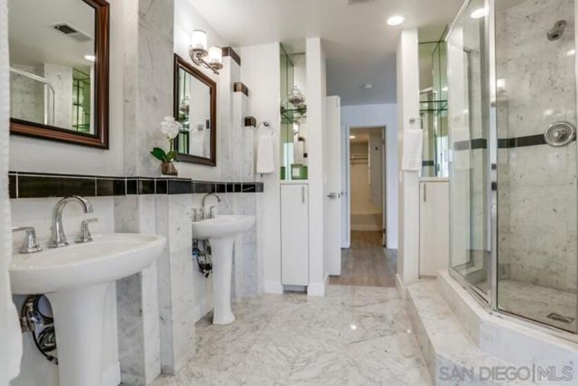 Incredibly rare, almost 2,000 square foot single level condo, in the heart of Crown Point, Pacific Beach. SHORT TERM RENTALS ALLOWED in the complex- projections attached! Beautifully remodeled with over $150,000 in new luxury flooring, quartz countertops, real wood cabinetry, stainless steel appliances, lighting, fixtures, fresh paint throughout, & more. Featuring a spacious floor plan with a dedicated dining area, formal living room with a fireplace, & a family room connected to the open kitchen which includes a large island & breakfast nook. This home showcases our temperate beach climate with 5 private outdoor spaces totaling approximately 400 square feet & the largest located right off the family room with plenty of space for entertaining, dining or watching sunsets over the neighborhood. The large primary bedroom has a walk-in closet, retreat space next to the two way fireplace, attached balcony & spacious, elegant bathroom with soaking tub, separate shower & 2 sink areas. Additional features: dedicated laundry room, plenty of storage/linen closets, recessed lighting & private/secure 1 car garage with additional off street parking spot behind the garage. This location is hard to beat...only 1 block to the Bay- sand, bike path, views or two blocks to the commercial hub for Crown Point- the famous Rocky's burger, new Tajima Ramen, North Park Beer Company, coffee shop, bar/restaurant & a market. Come live the true beach area lifestyle...walkability, sun/sand & enjoyment!